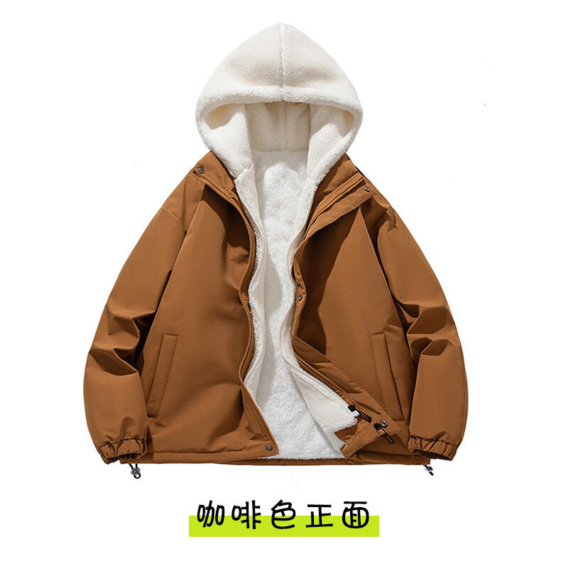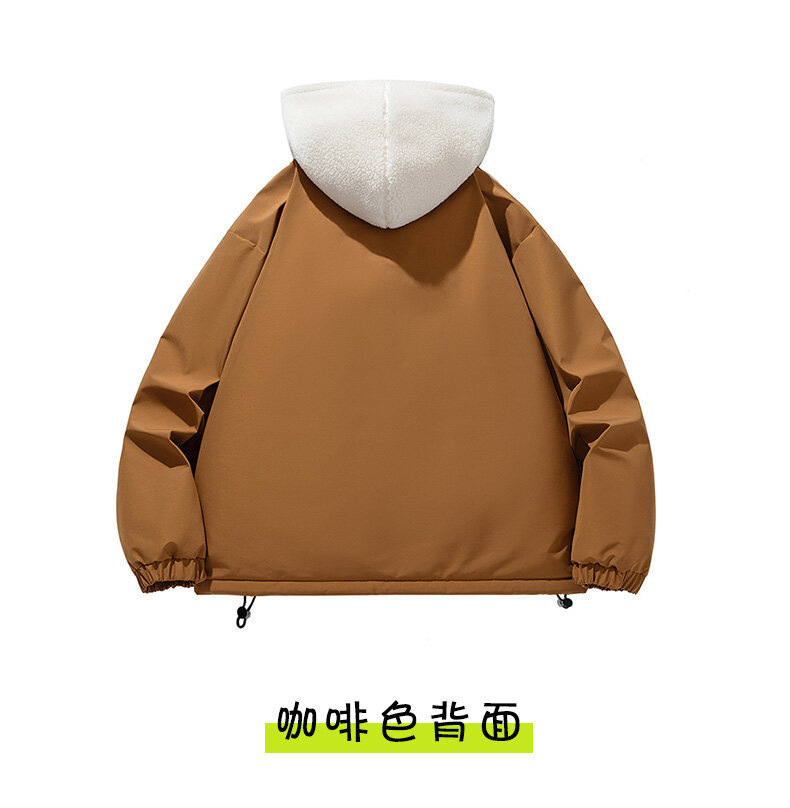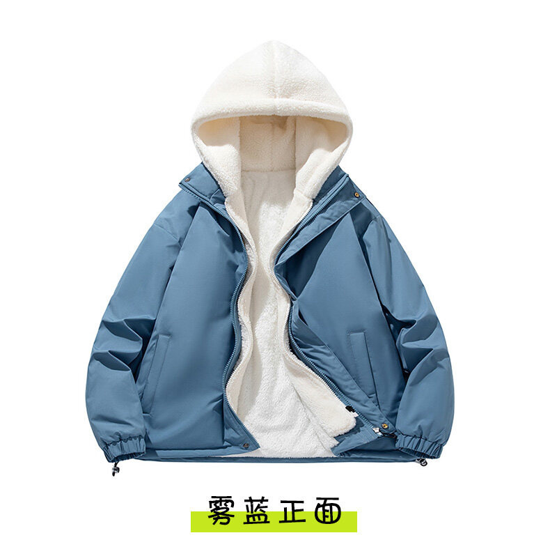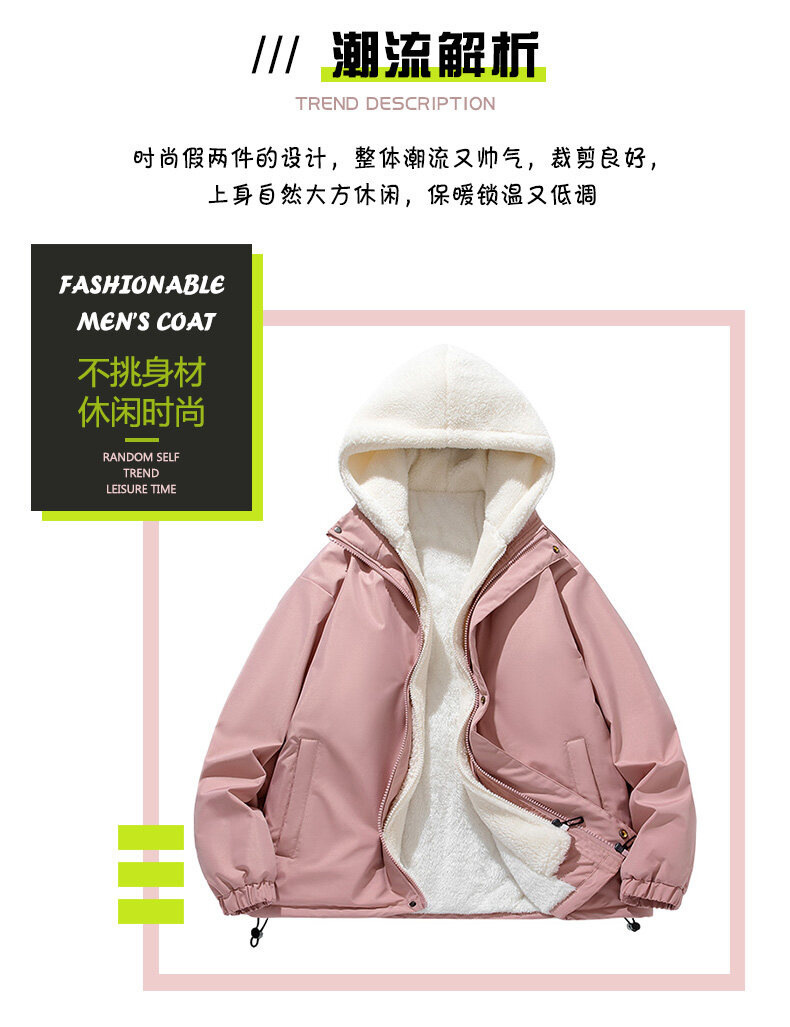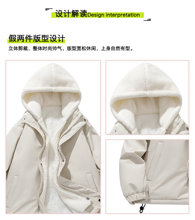 假两件羊羔绒颗粒棉衣男士冬季外套衣服加绒棉袄情侣面包潮牌棉服