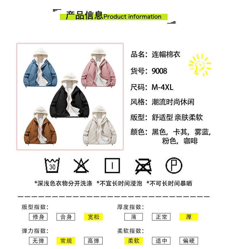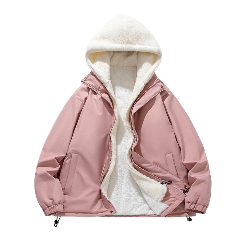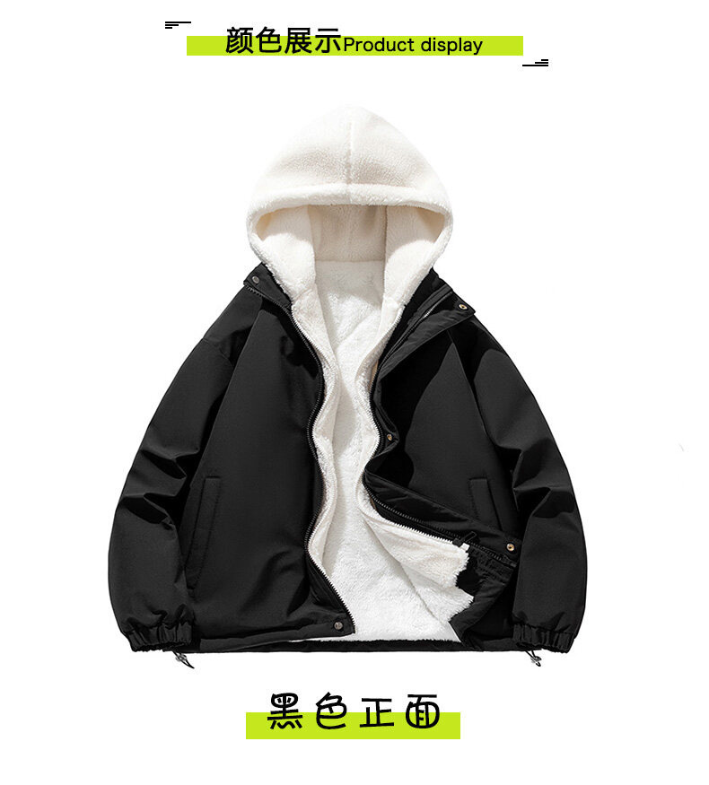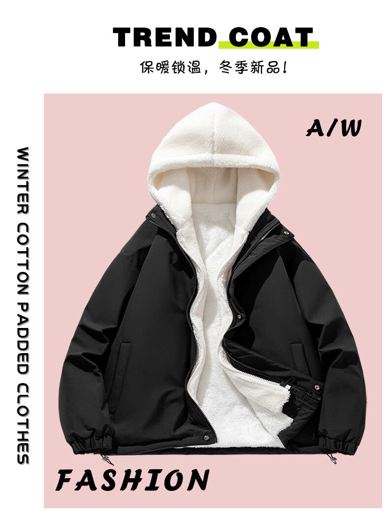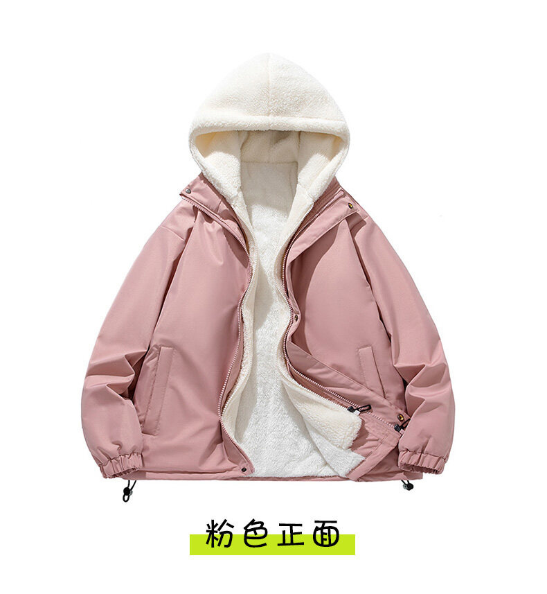 假两件羊羔绒颗粒棉衣男士冬季外套衣服加绒棉袄情侣面包潮牌棉服