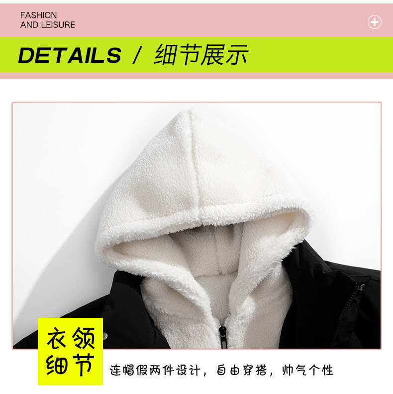 가짜 투피스 램 벨벳 세분화 된 면 패딩 코트 남성 겨울 코트 옷 기모 면 패딩 코트 커플 빵 패션 브랜드 면 패딩 코트스토어 가기