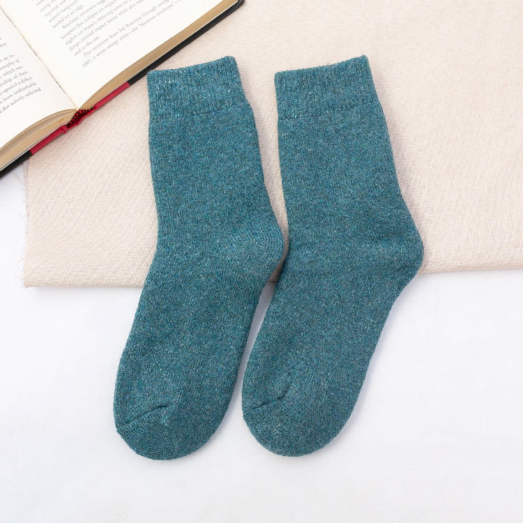 양모 양말 여성용 미드 튜브 슈퍼 두꺼운 가을과 겨울 미드 튜브 양말 두꺼운 기모 슈퍼 두꺼운 동북 울 루프 양말 남성스토어 가기