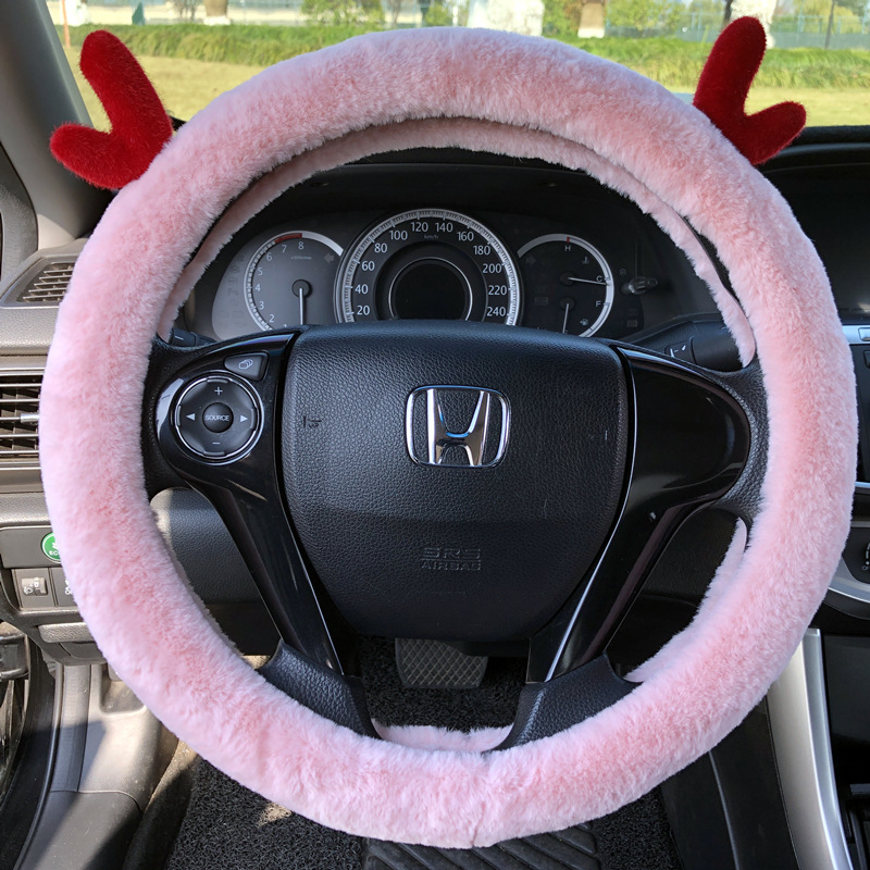 • 빨간 뿔-핑크 모조 토끼 모피 커버