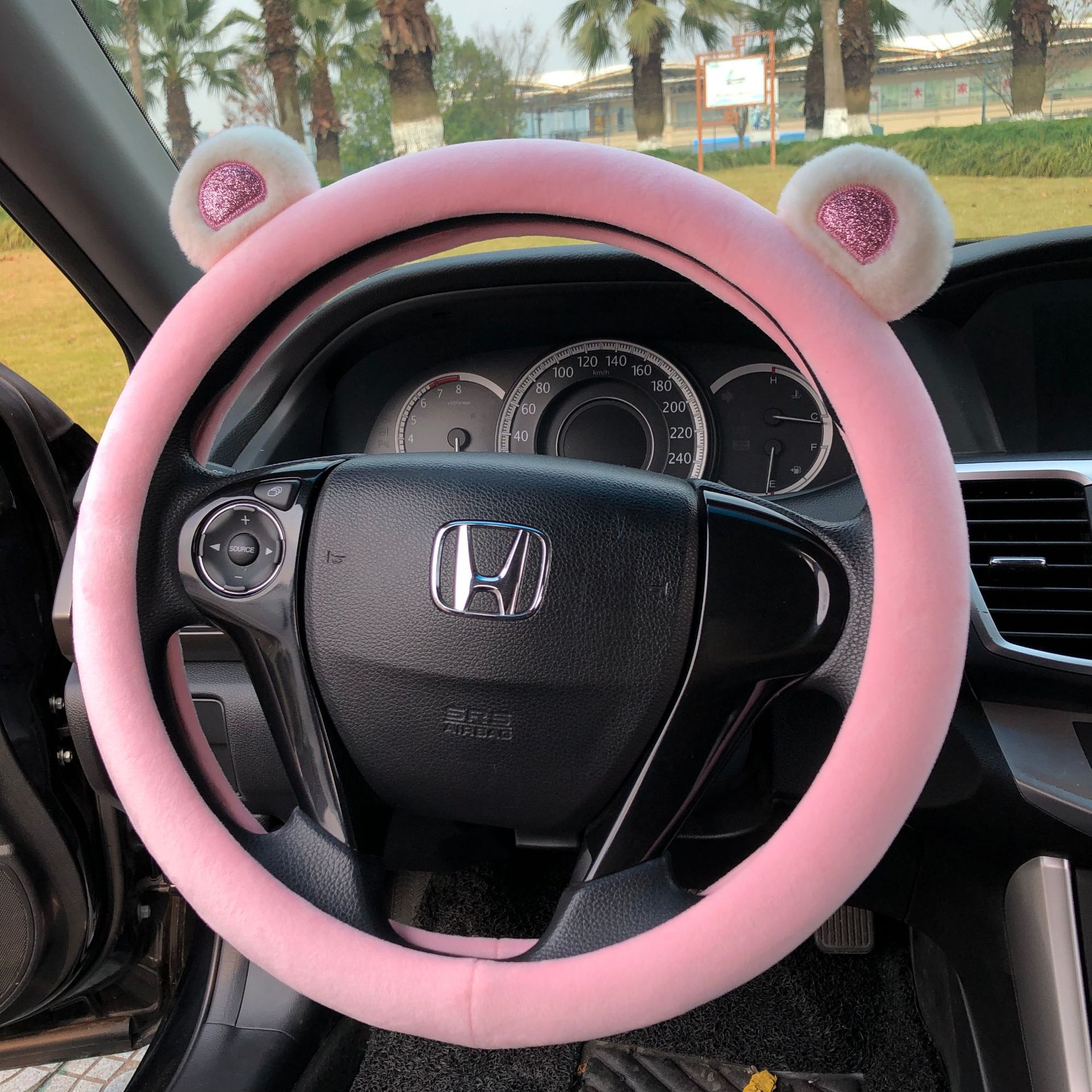 • 흰 고양이 귀-핑크 보푸라기 손잡이 커버