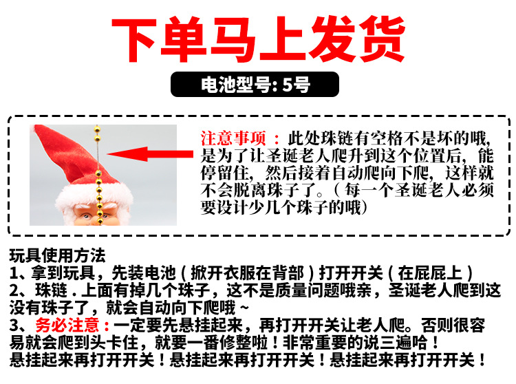 유럽식 크리스마스 전기 등반 구슬 산타 클로스 홈 어린이 전기 장난감 크리스마스 선물 장식