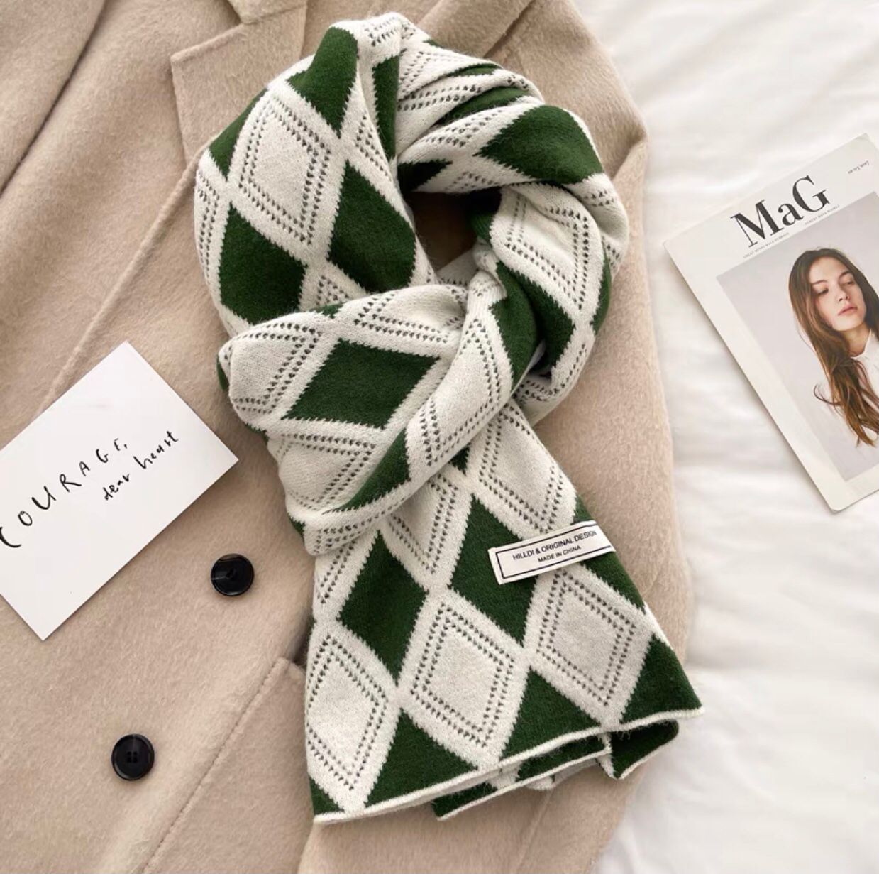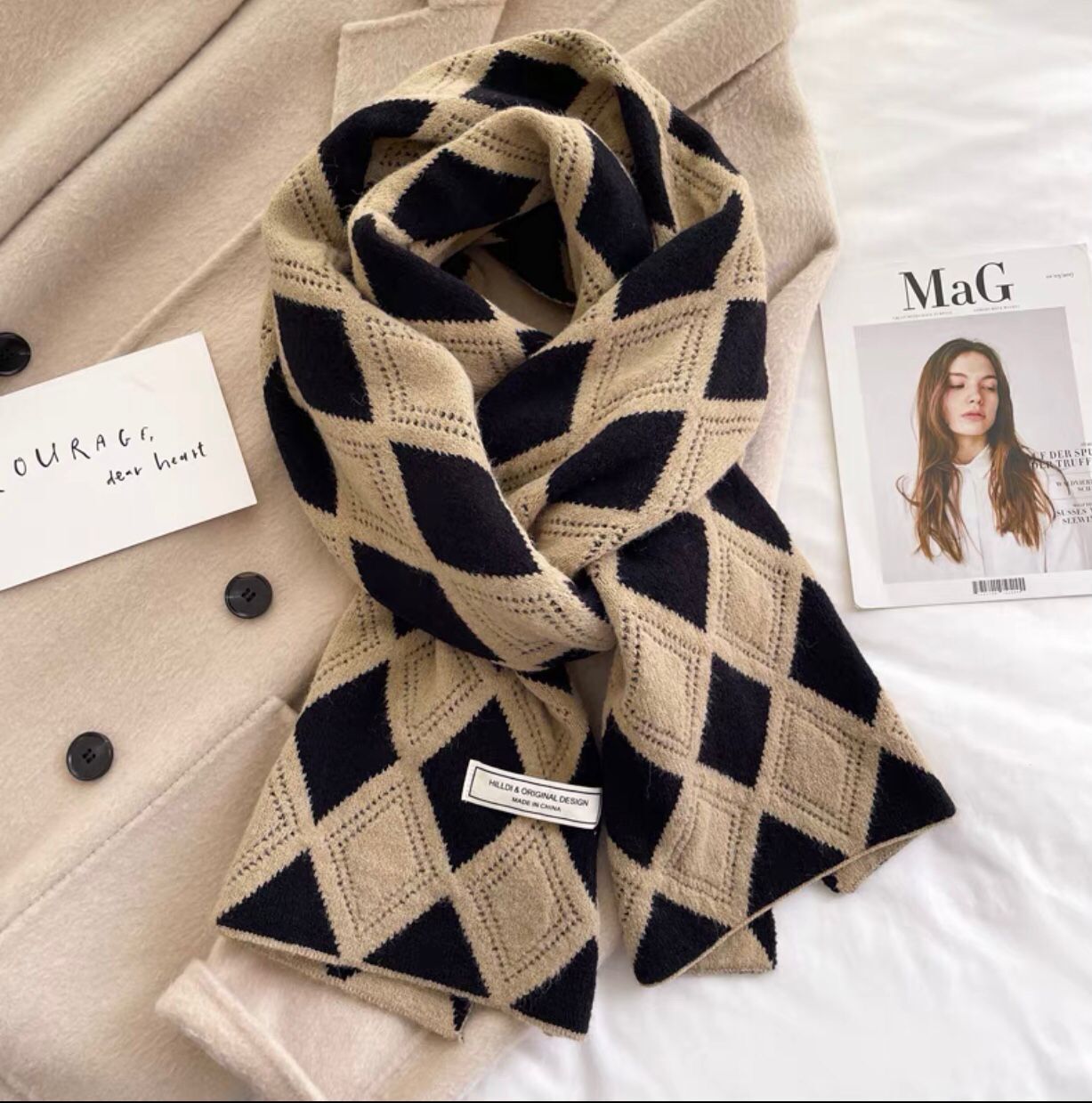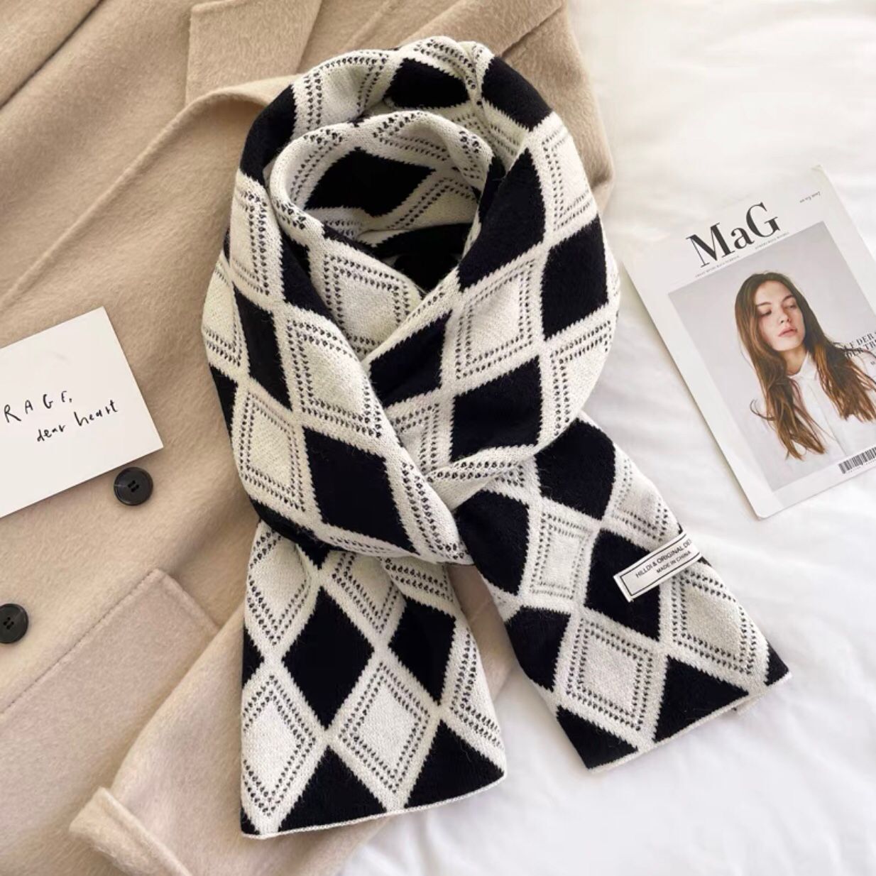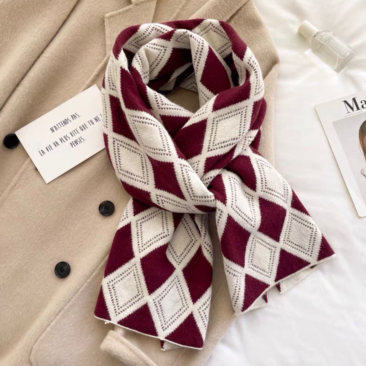 한국 스타일 북극 벨벳 다이아몬드 격자 무늬 스카프 여성의 겨울 예술적 빈티지 니트 울 목도리 따뜻한 학생 스카프스토어 가기