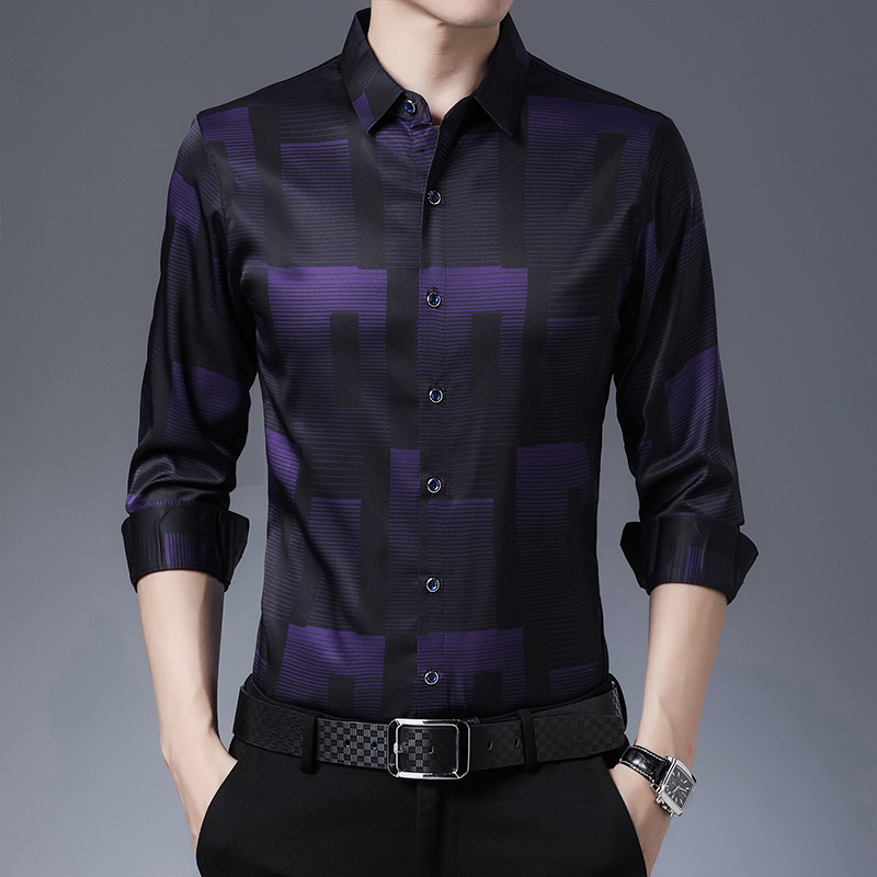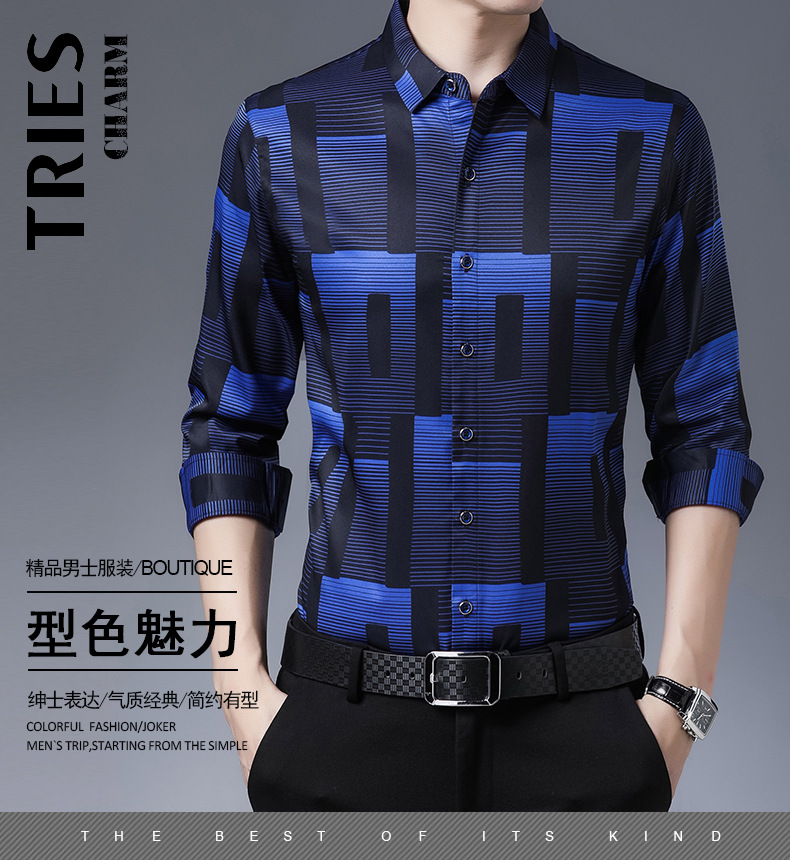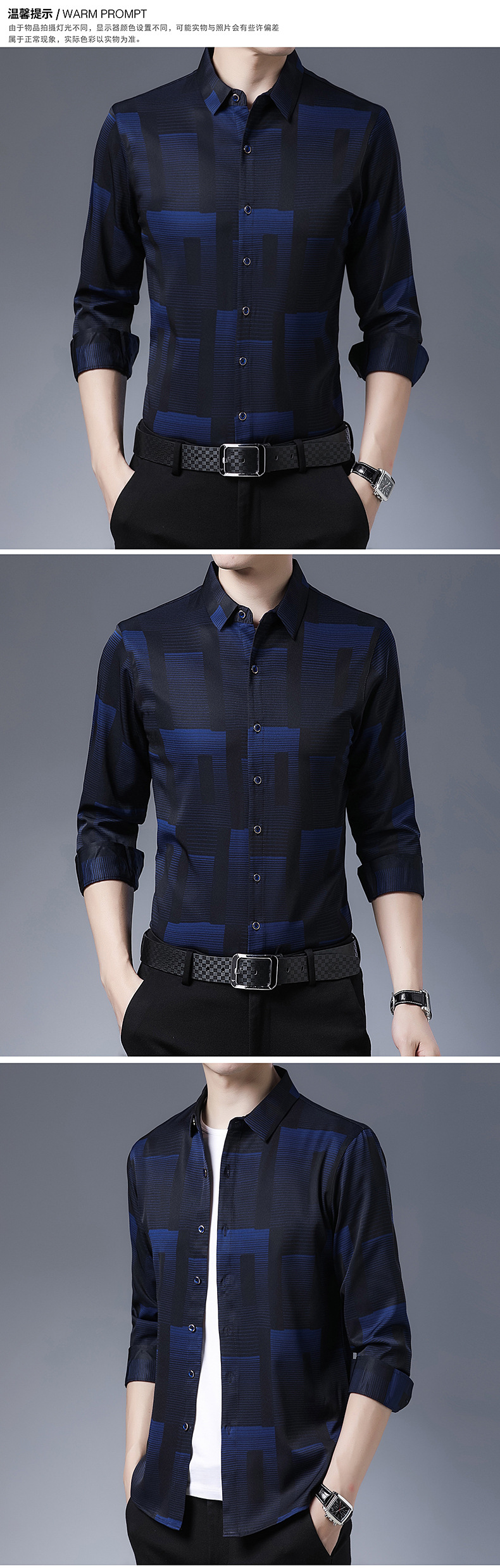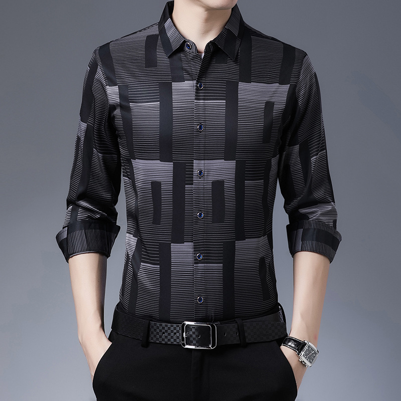 2023 긴팔 셔츠 남성 봄 가을 카라 체크무늬 상의 청년 캐주얼 패션 긴 셔츠 남성복 트렌드