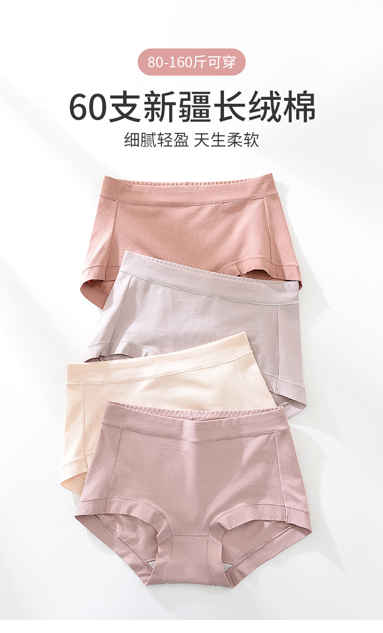 60S 신장 장섬유 면 중간 허리 여성용 속옷 단색 면 7A 항균 통기성 여성용 속옷 사각팬티스토어 가기