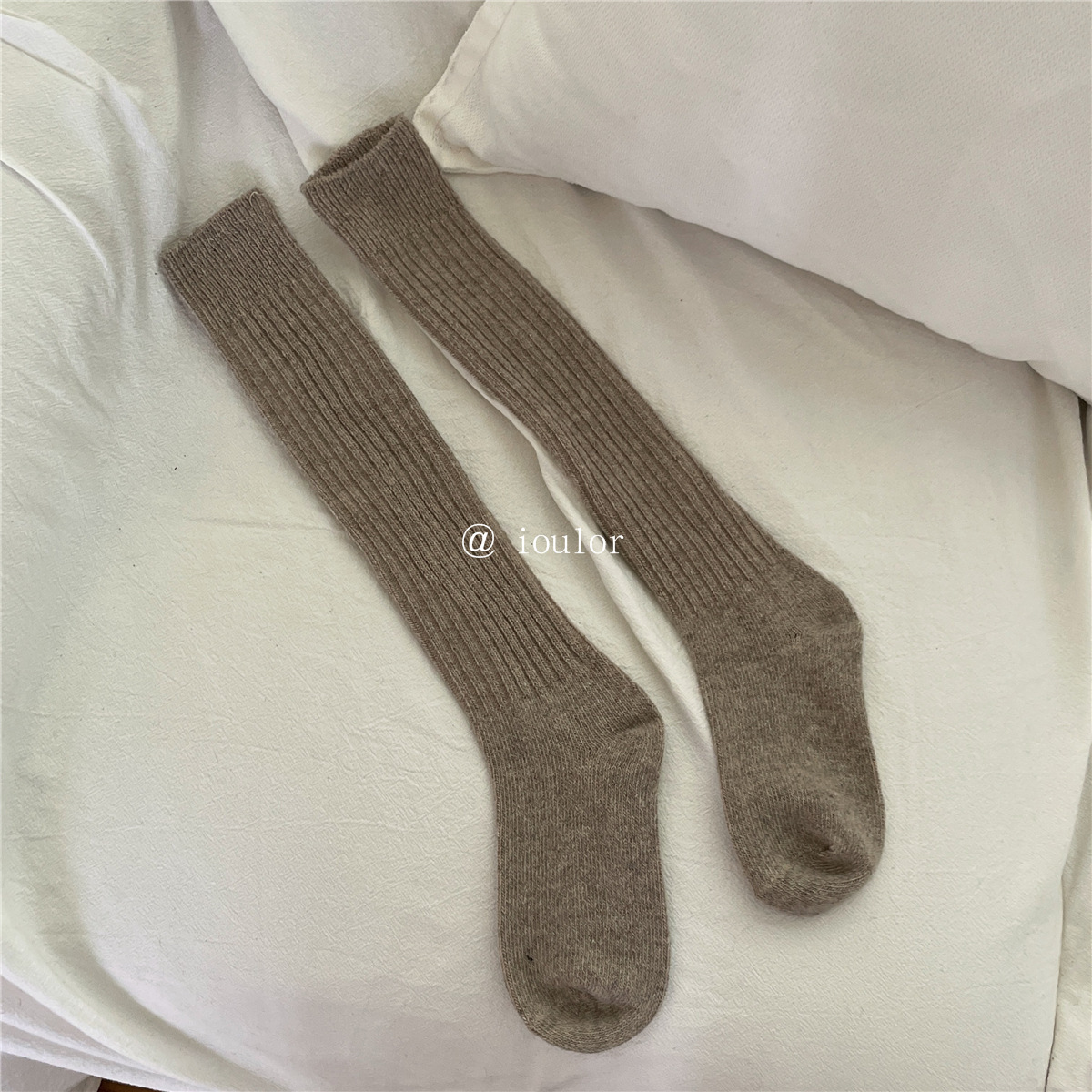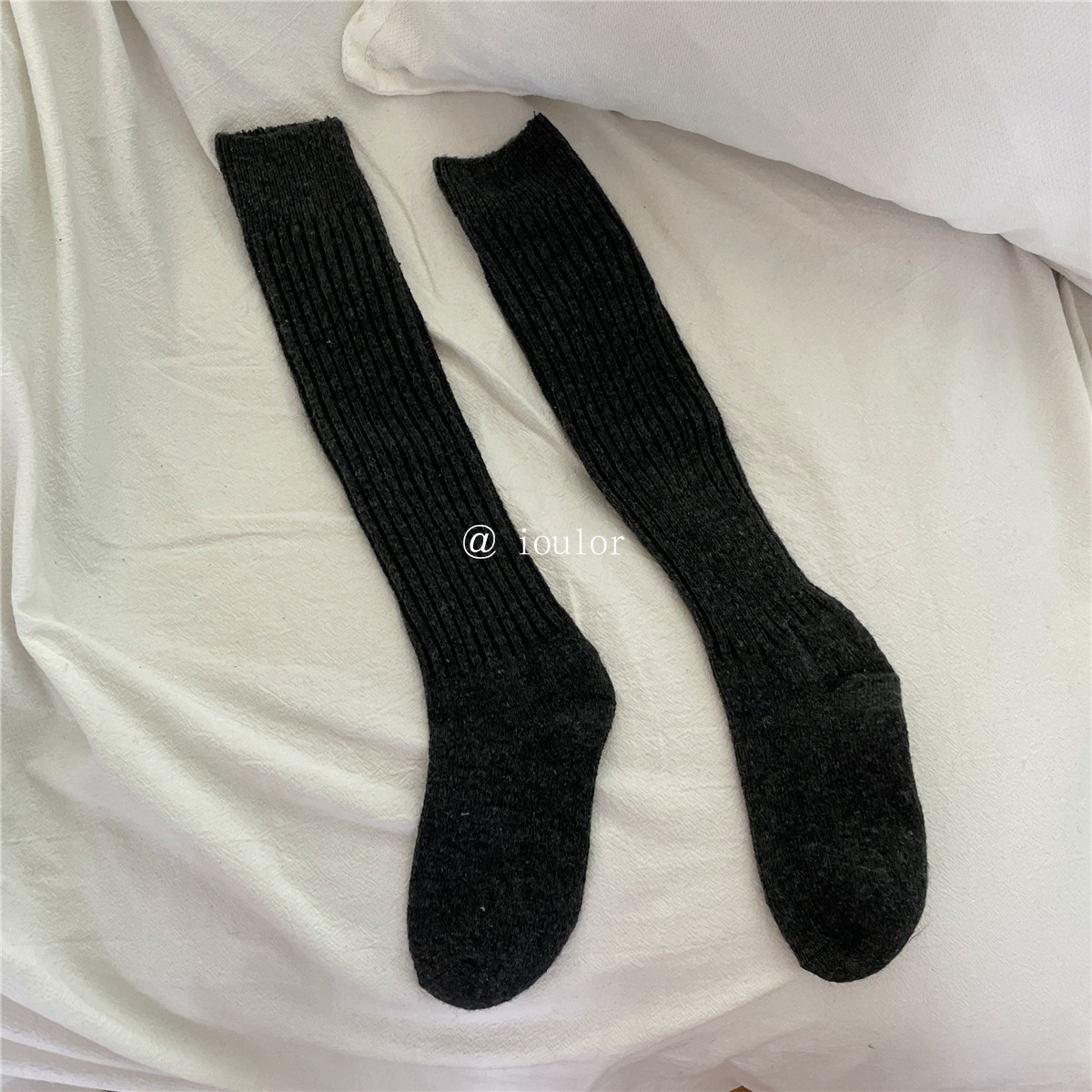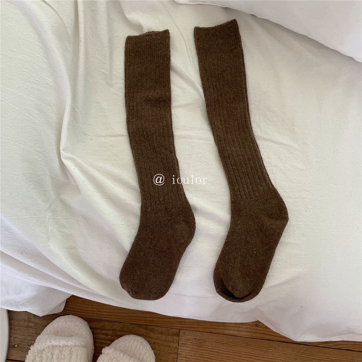 IOULOR 울 송아지 양말 가을과 겨울 두꺼운 양말 다크 브라운 이중 바늘 더미 양말 일본 여성 양말과 무릎 양말 도매스토어 가기