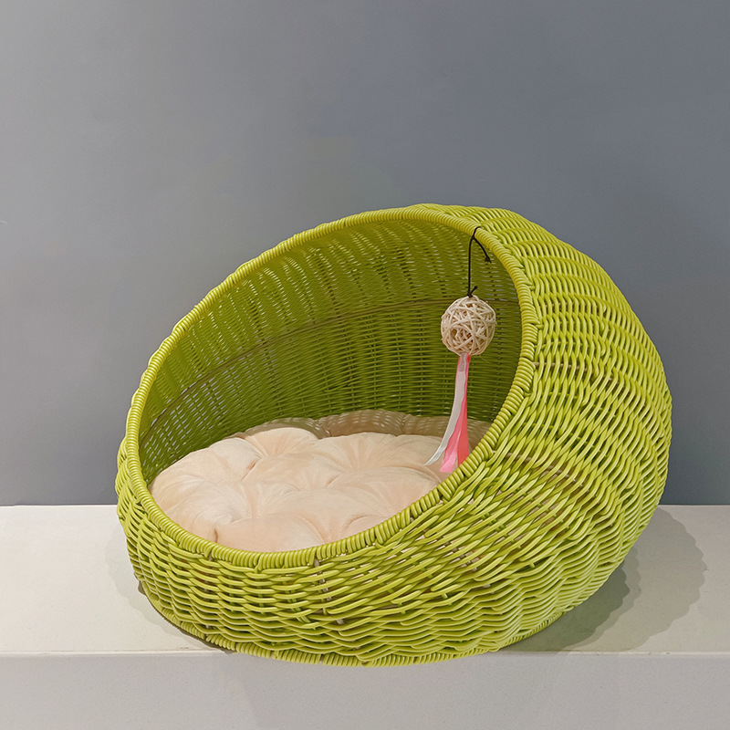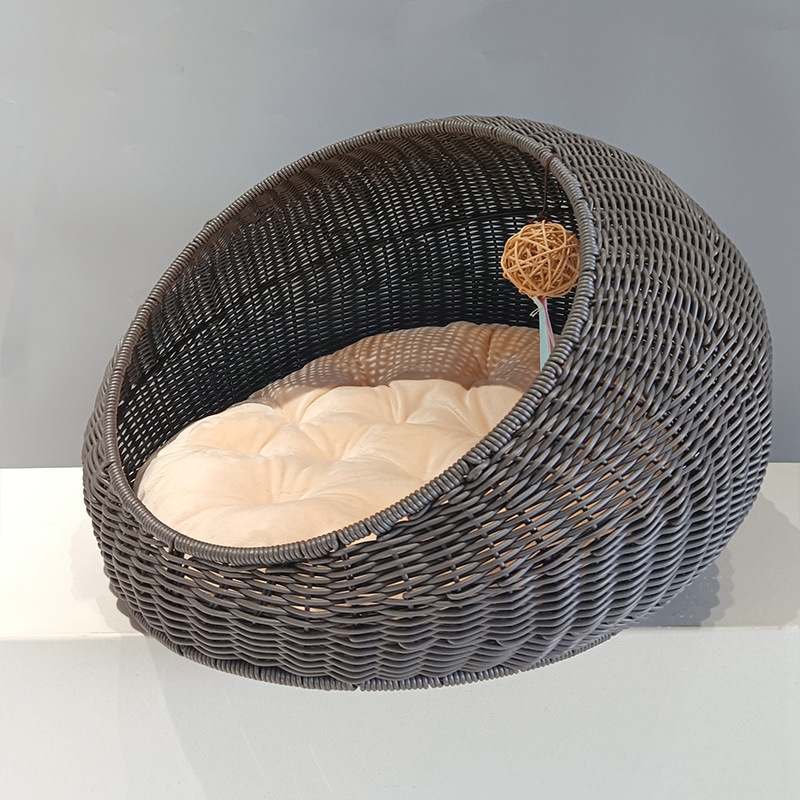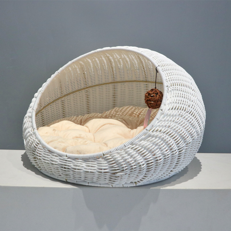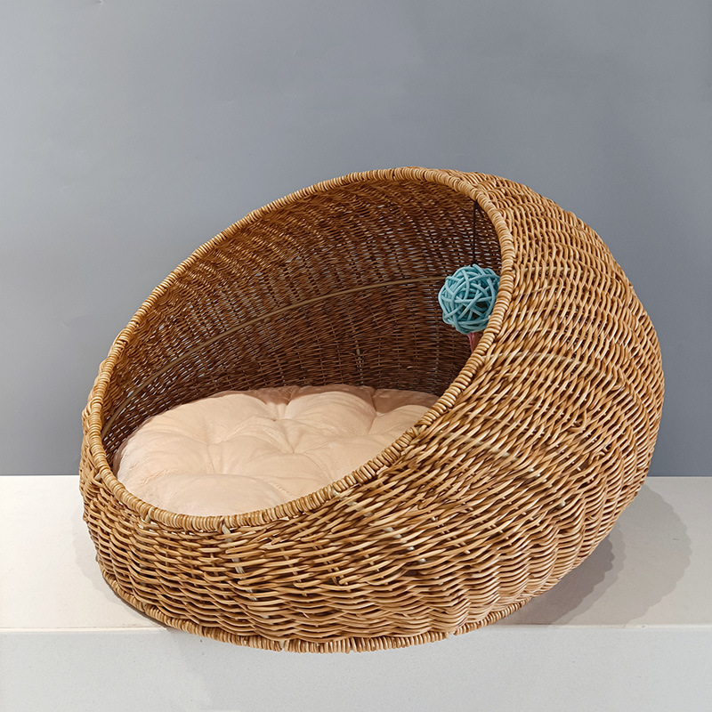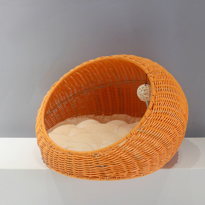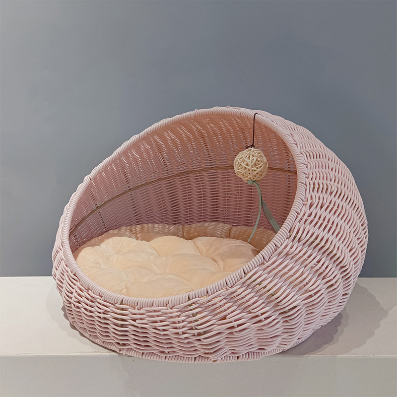 손으로 만든 모조 등나무 고양이 둥지 교수형 바구니 고양이 케이지 도매 반 폐쇄 따뜻한 애완 동물 매트 개 사육장 고양이 집 빌라