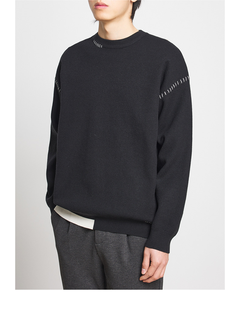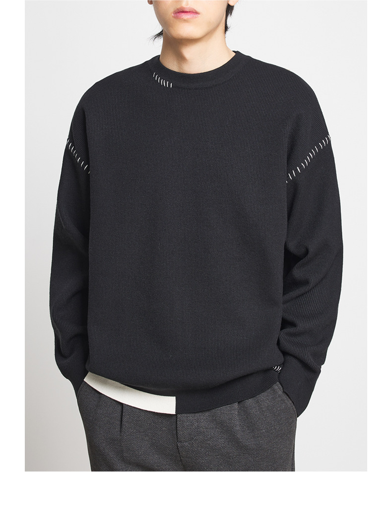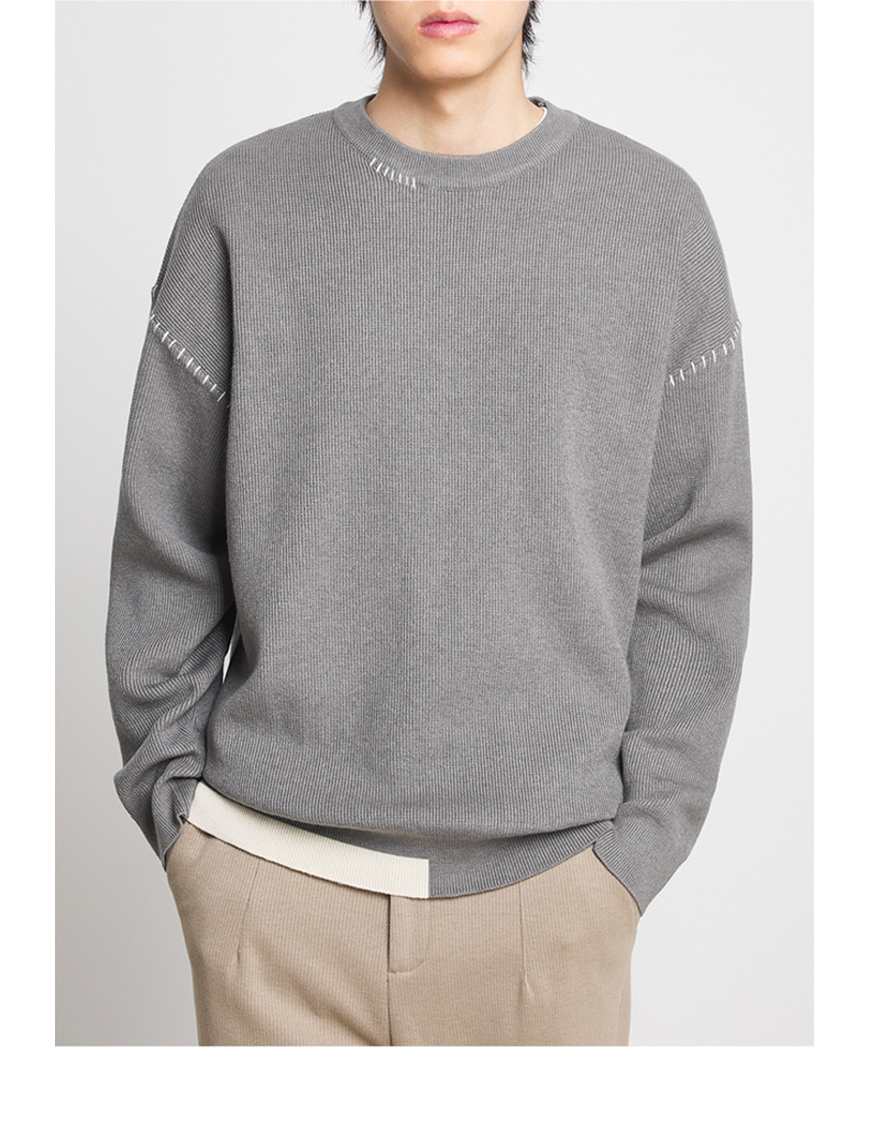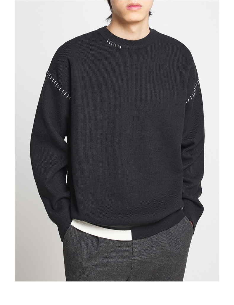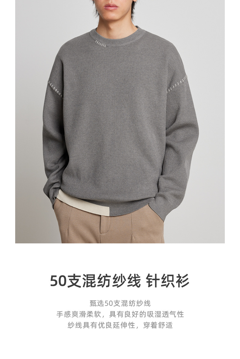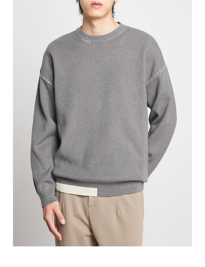 모마이크 패션 배색 스티치 스웨터 남성용 2025 가을 신상 심플 라운드넥 남성 니트웨어 20328스토어 가기