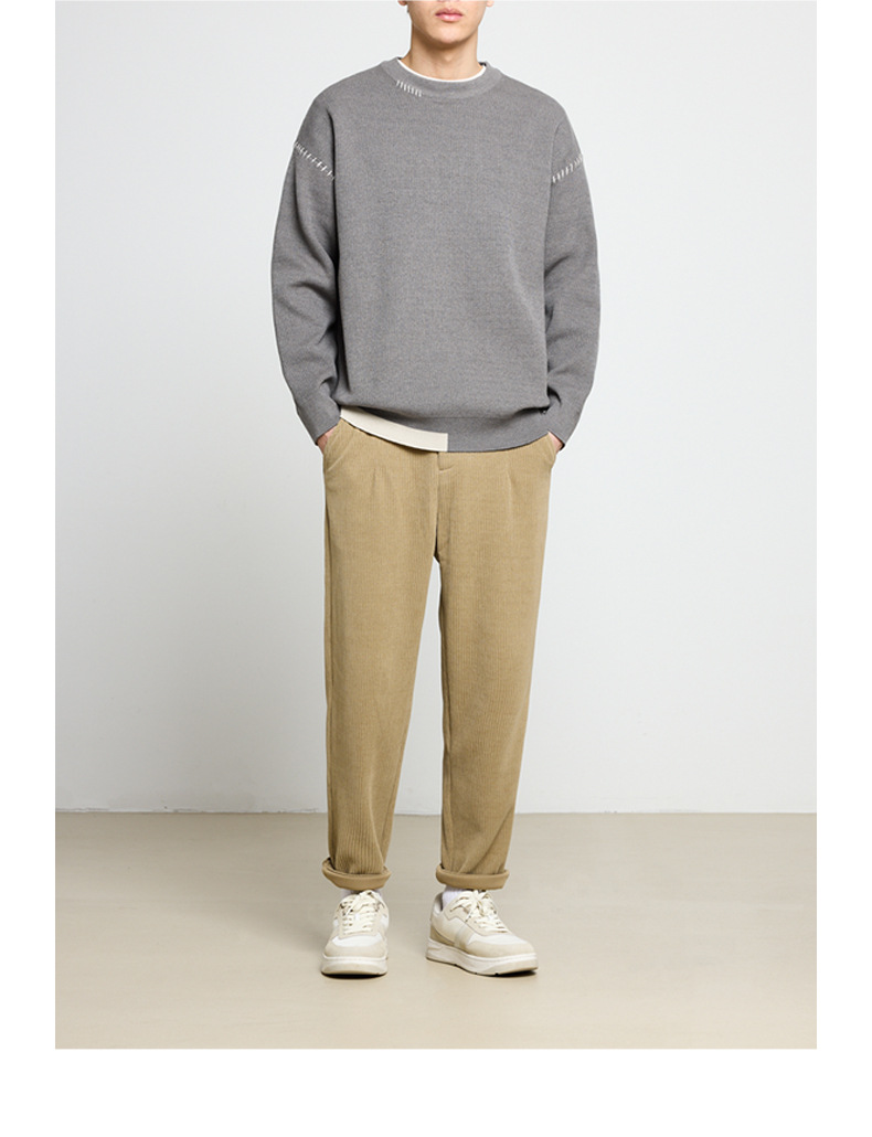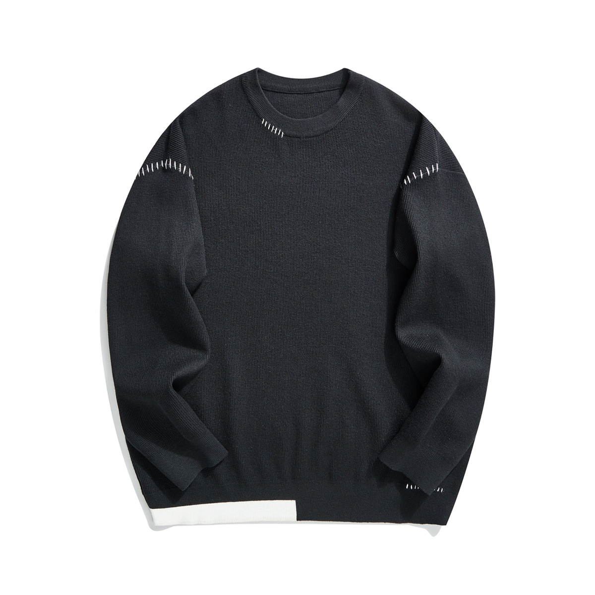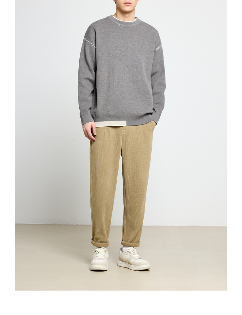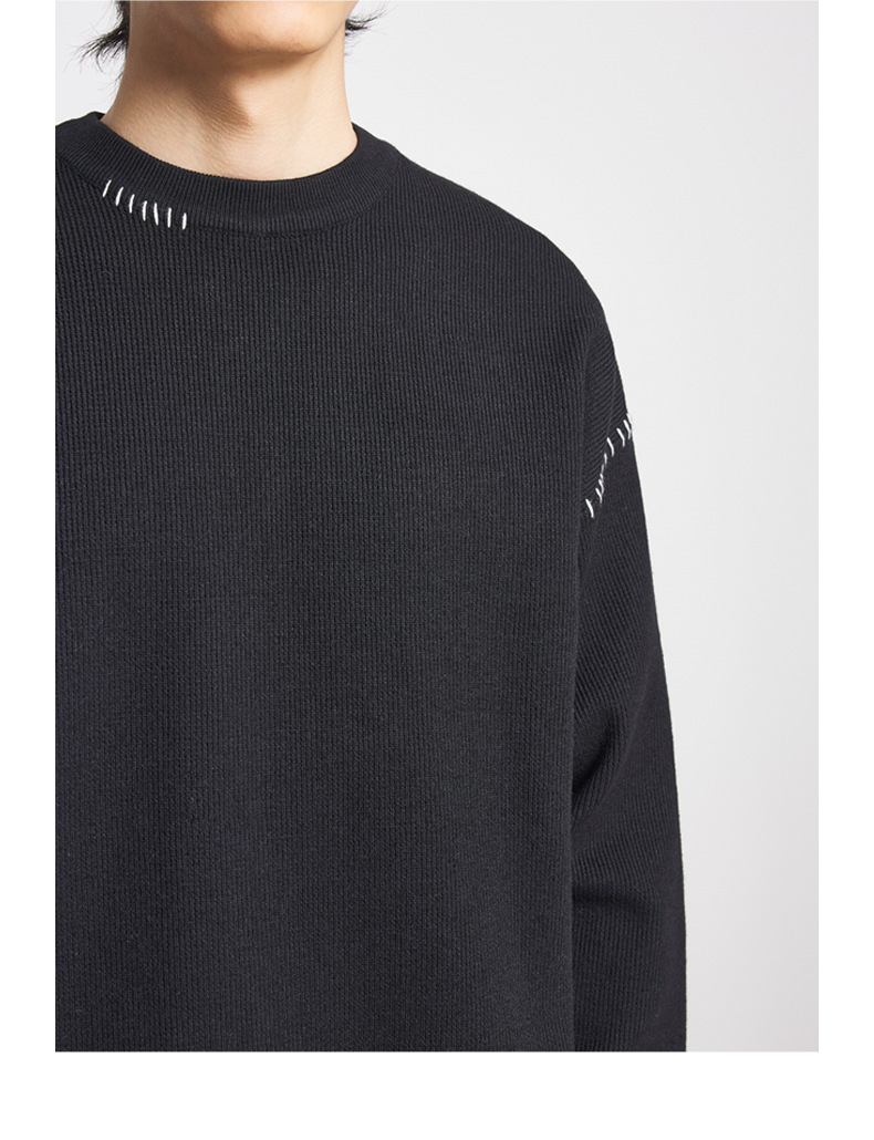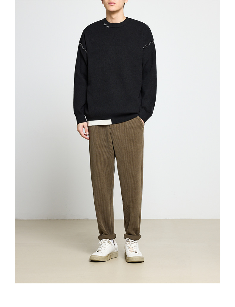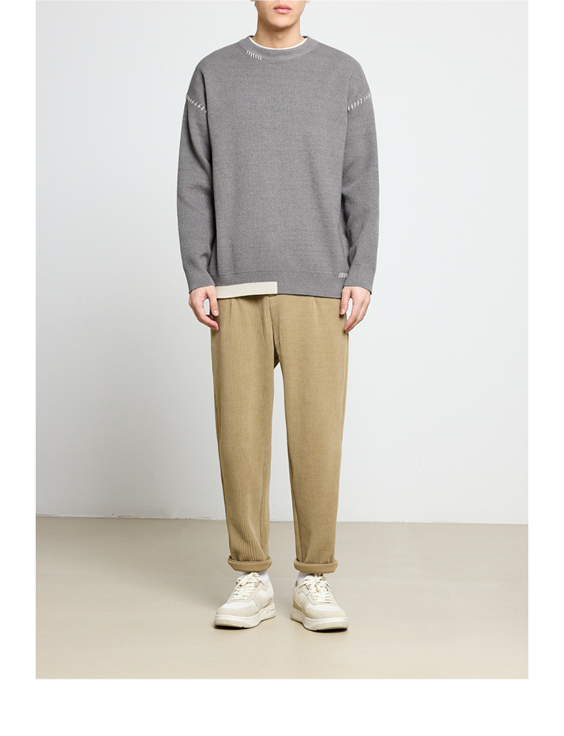 모마이크 패션 배색 스티치 스웨터 남성용 2025 가을 신상 심플 라운드넥 남성 니트웨어 20328스토어 가기