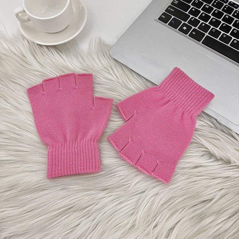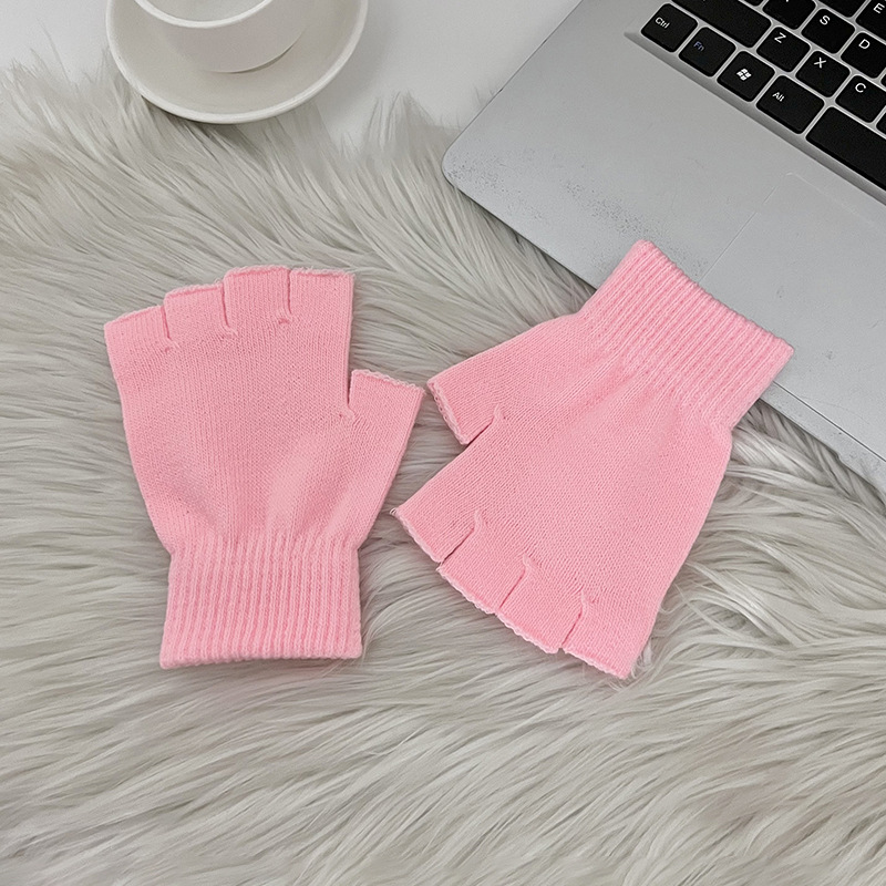 겨울 새로운 반 손가락 캔디 컬러 니트 장갑 여성 야외 감기 방지 장갑 사무실 학생 따뜻한 장갑 도매스토어 가기