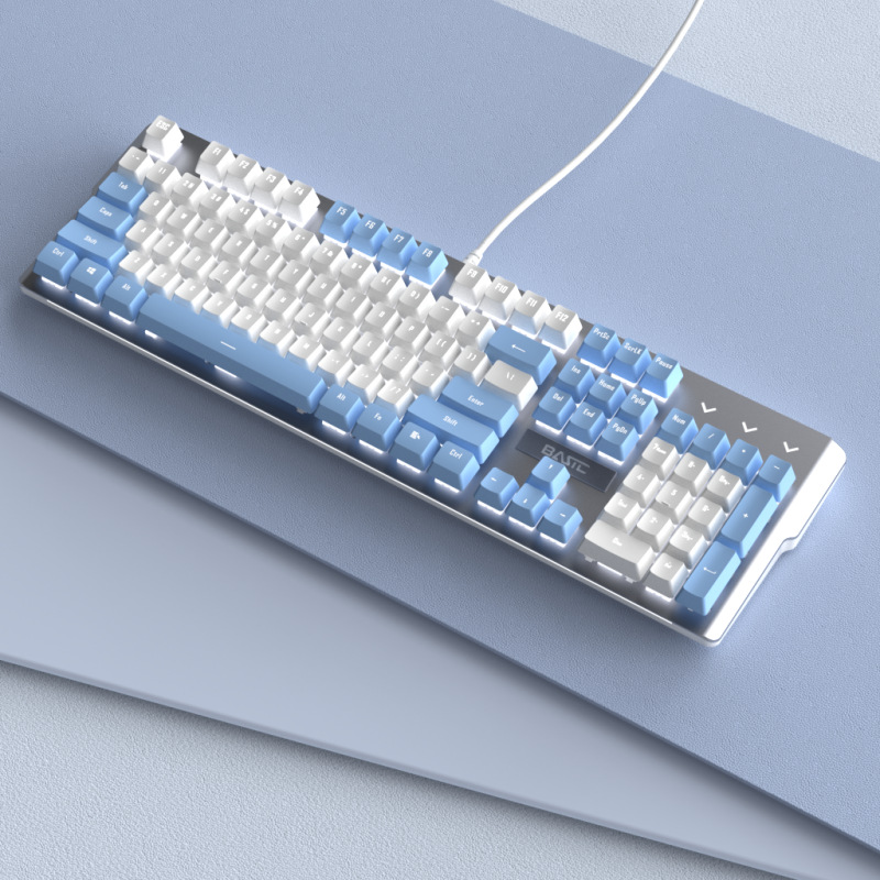 핸디 스노우 문 기계식 키보드 화이트 및 블루 더블 컬러 그린 샤프트 차 샤프트 컴퓨터 유선 전자 스포츠 게임 금속 발광스토어 가기