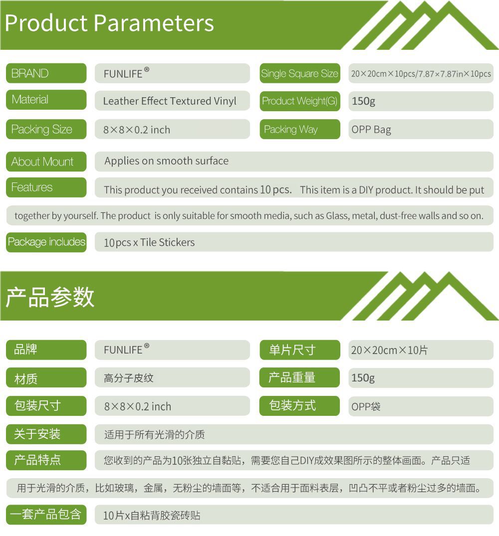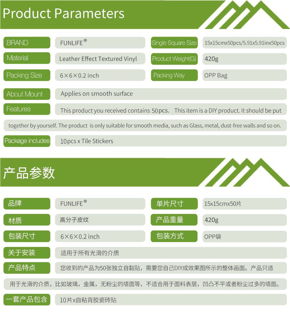 Funlife 무료 boho 바람 폴리머 가죽 타일 페이스트 22 새로운 주방 및 욕실 장식 자체 붙여 넣기 TS207