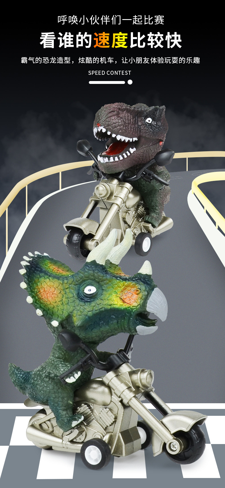 국경을 넘는 어린이용 시뮬레이션 공룡 관성 오토바이 장난감 세트, 틱톡 인기 남자아이 장난감 자동차, 도매 판매스토어 가기
