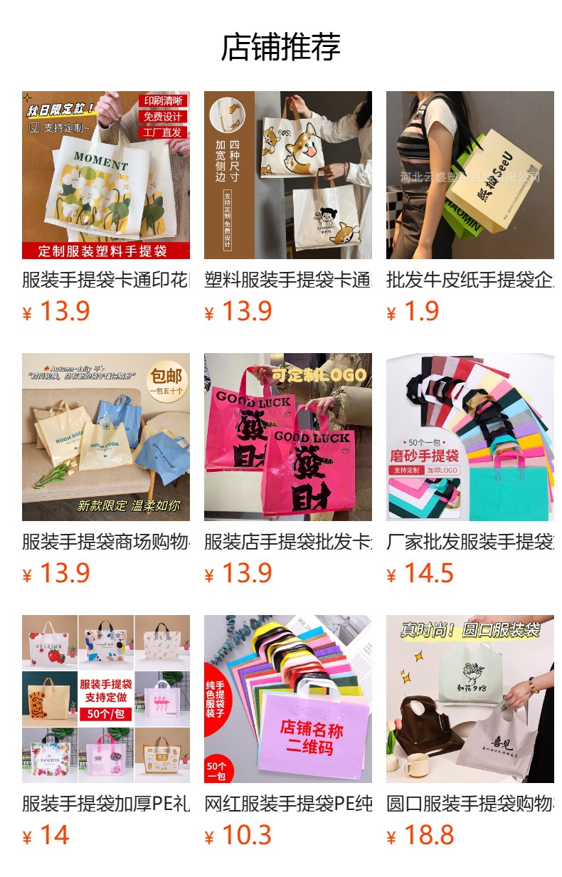 服装手提袋 clothing store shopping bag