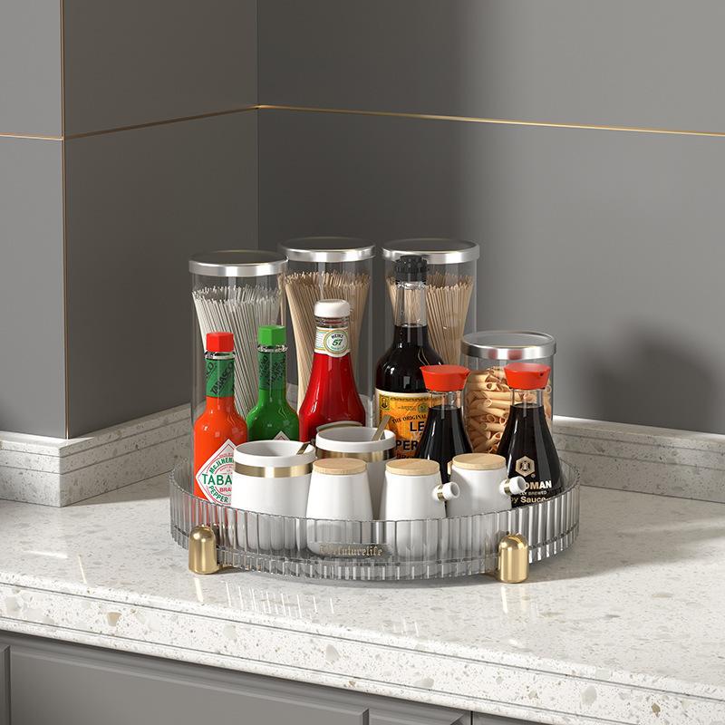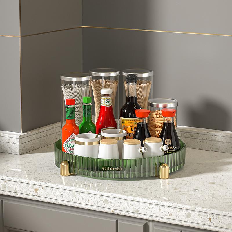 금도금 회전식 수납함, 다기능 수납선반, 화장품 정리대, 주방 양념통 정리대, 무타공