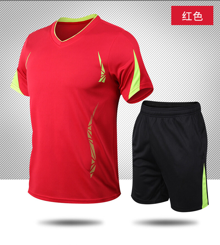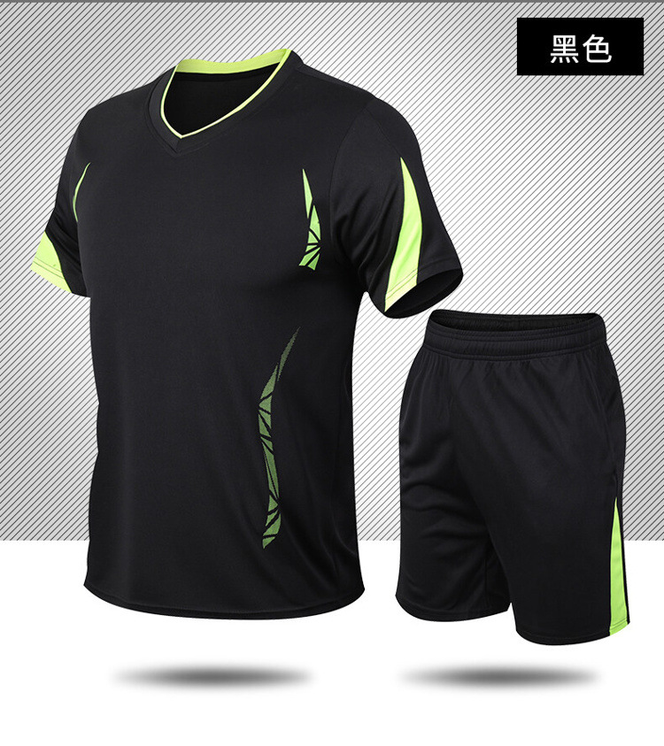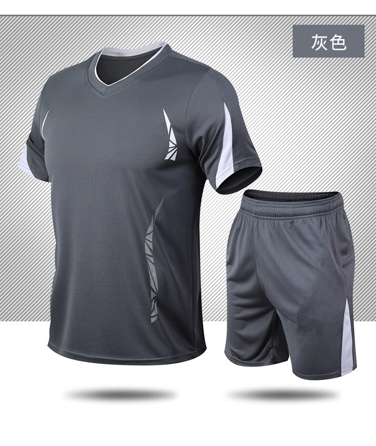 스포츠 세트 남자의 여름 피트니스 반팔 티셔츠 남자의 속건 의류 느슨한 캐주얼 스포츠웨어 플러스 사이즈 실행스토어 가기