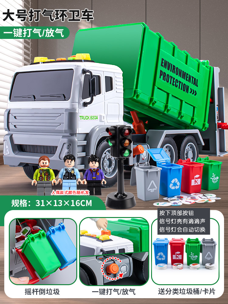 • [기압] 대형 쓰레기 차 그린 세트 + 3 인형 + 신호등