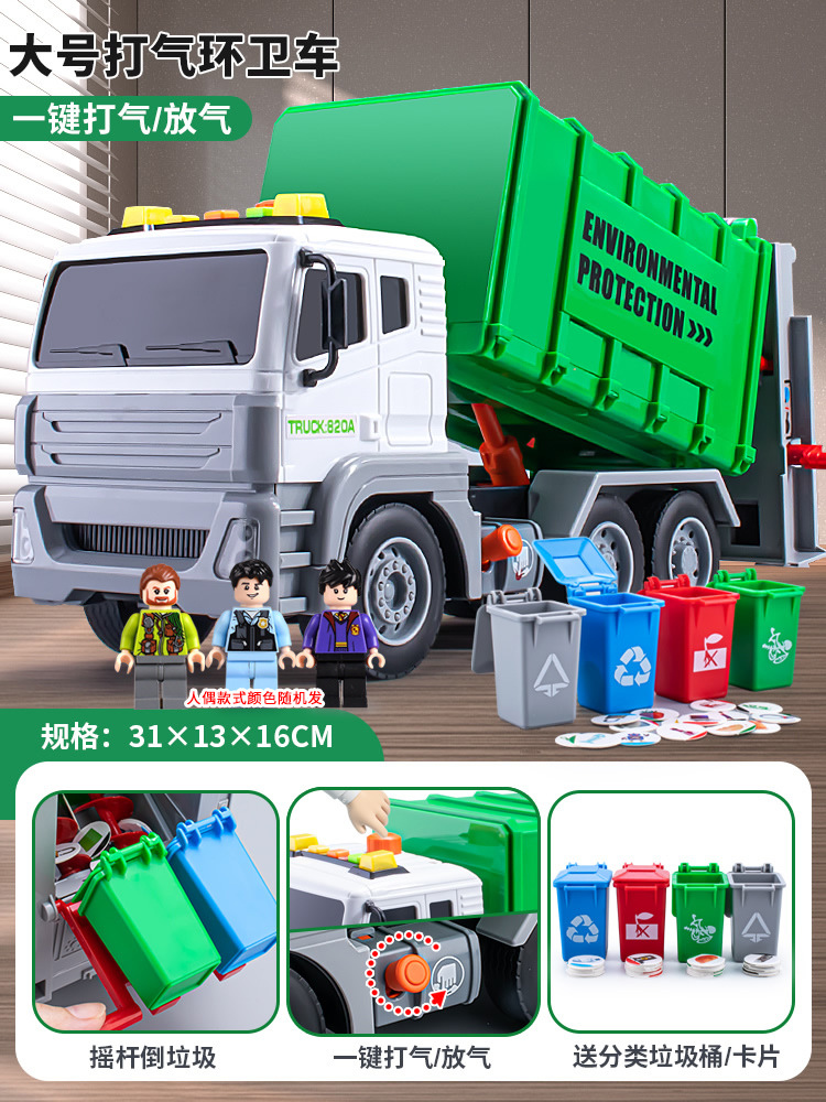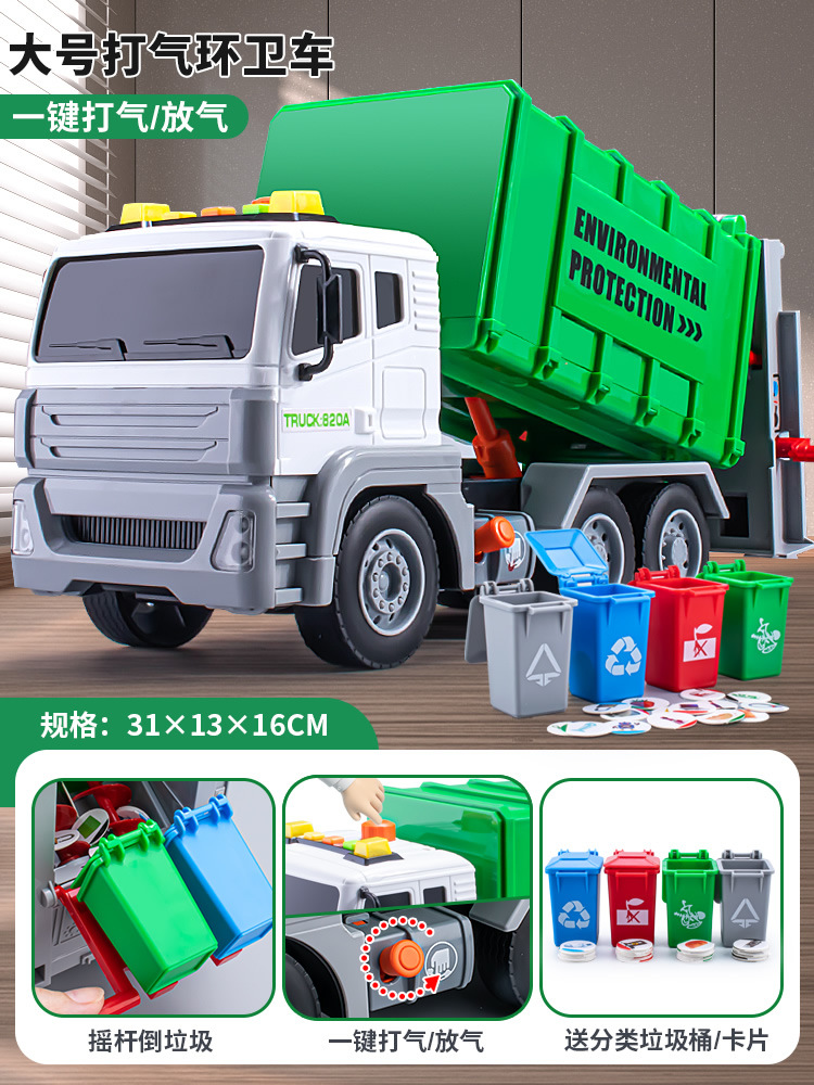 대형 어린이 쓰레기 트럭 위생 트럭 엔지니어링 트럭 자기 적재 덤프 휴지통 어린이 장난감 소년