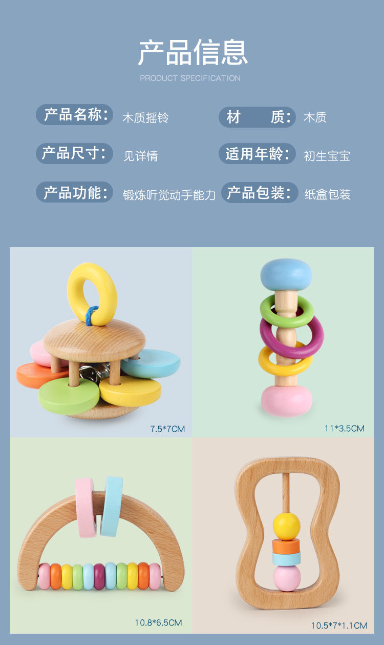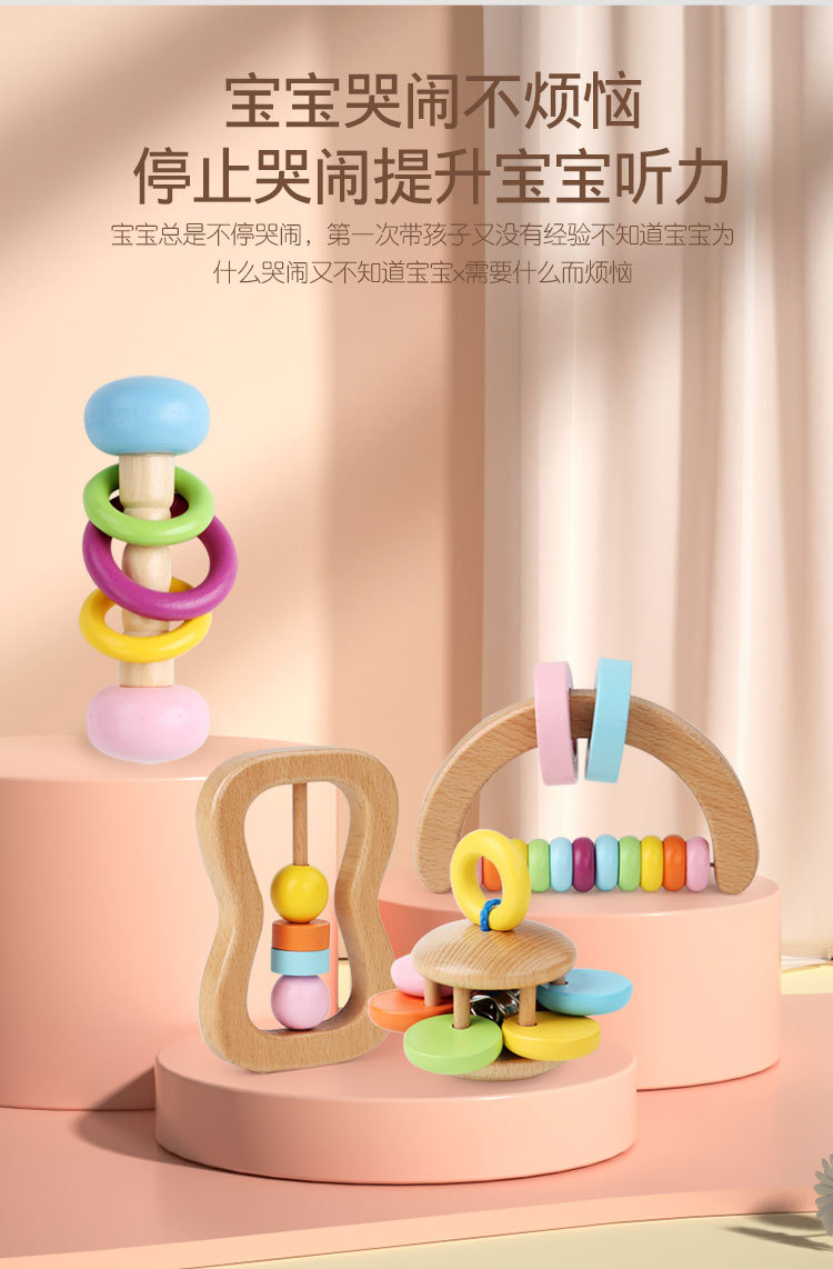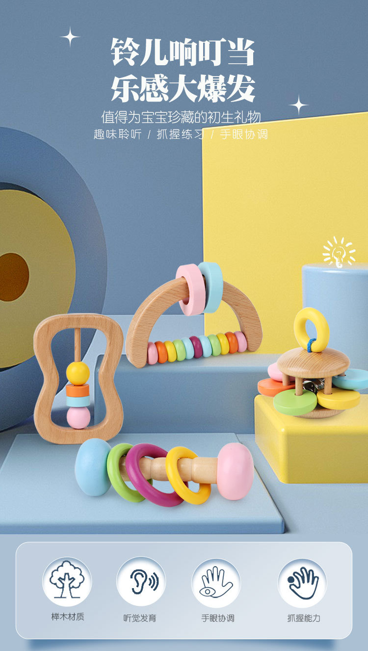 나무 딸랑이 4 피스 오르프 악기 휴대용 딸랑이 유아 편안한 파악 조기 교육 교육 완구스토어 가기