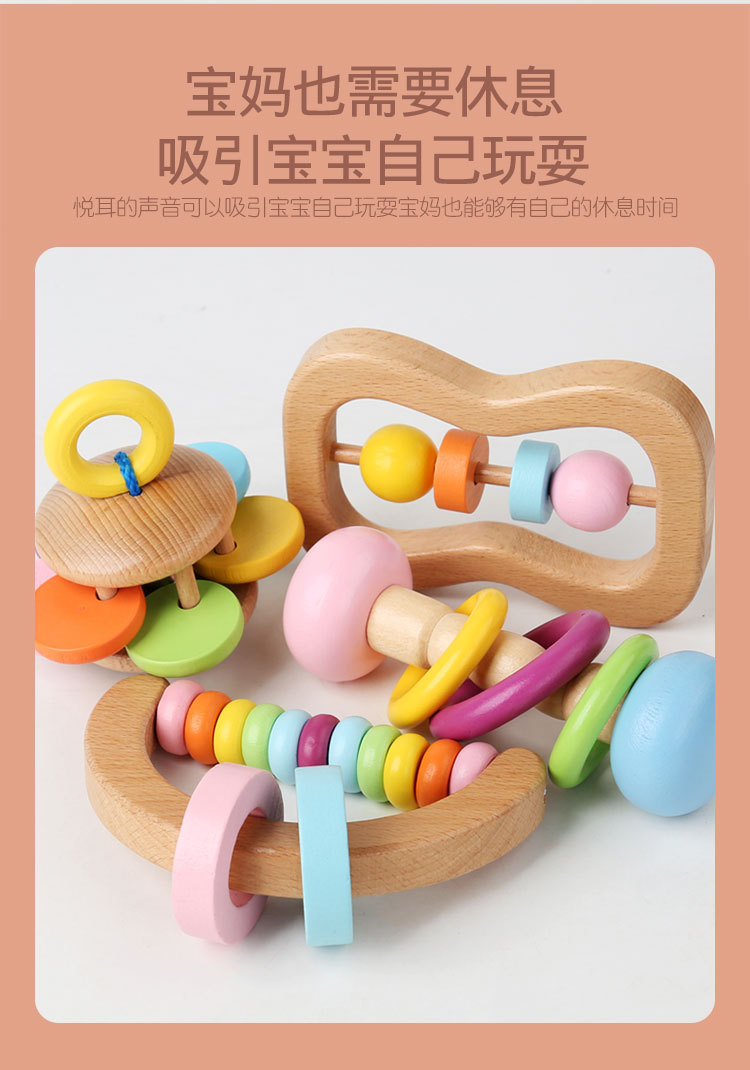 나무 딸랑이 4 피스 오르프 악기 휴대용 딸랑이 유아 편안한 파악 조기 교육 교육 완구