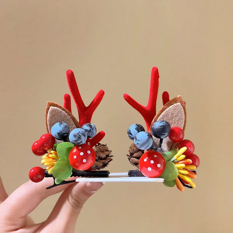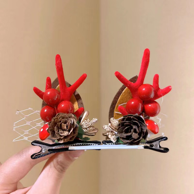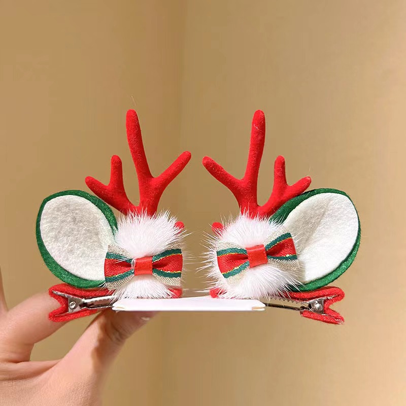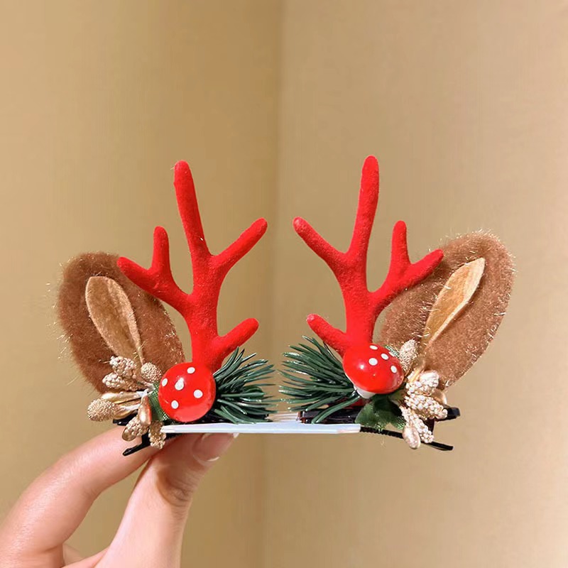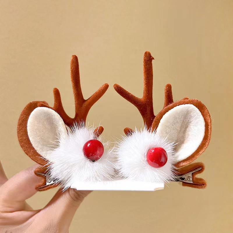 여성용 크리스마스 머리띠, 귀여운 엘크 뿔 머리띠, 헤어 액세서리, 크리스마스 클립, 머리핀, 머리핀, 머리핀, 사이드 클립