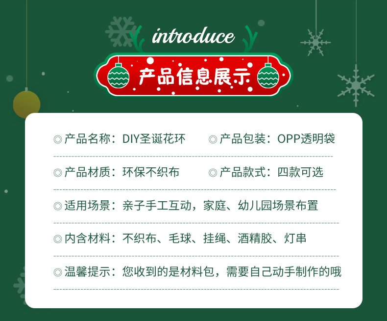 어린이 diy 수제 크리스마스 화환 장식 재료 패키지 유치원 크리스마스 장식 장면 장식 펜던트