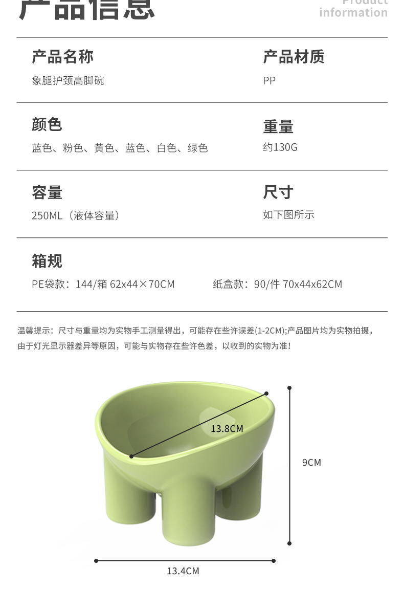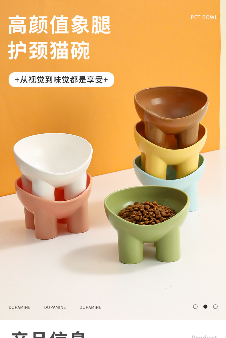 Havo 원래 목 보호 고양이 그릇 마카롱 컬러 코끼리 다리 그릇 큰 직경 고양이 음식 분지 플라스틱 높은 발 애완 동물 그릇