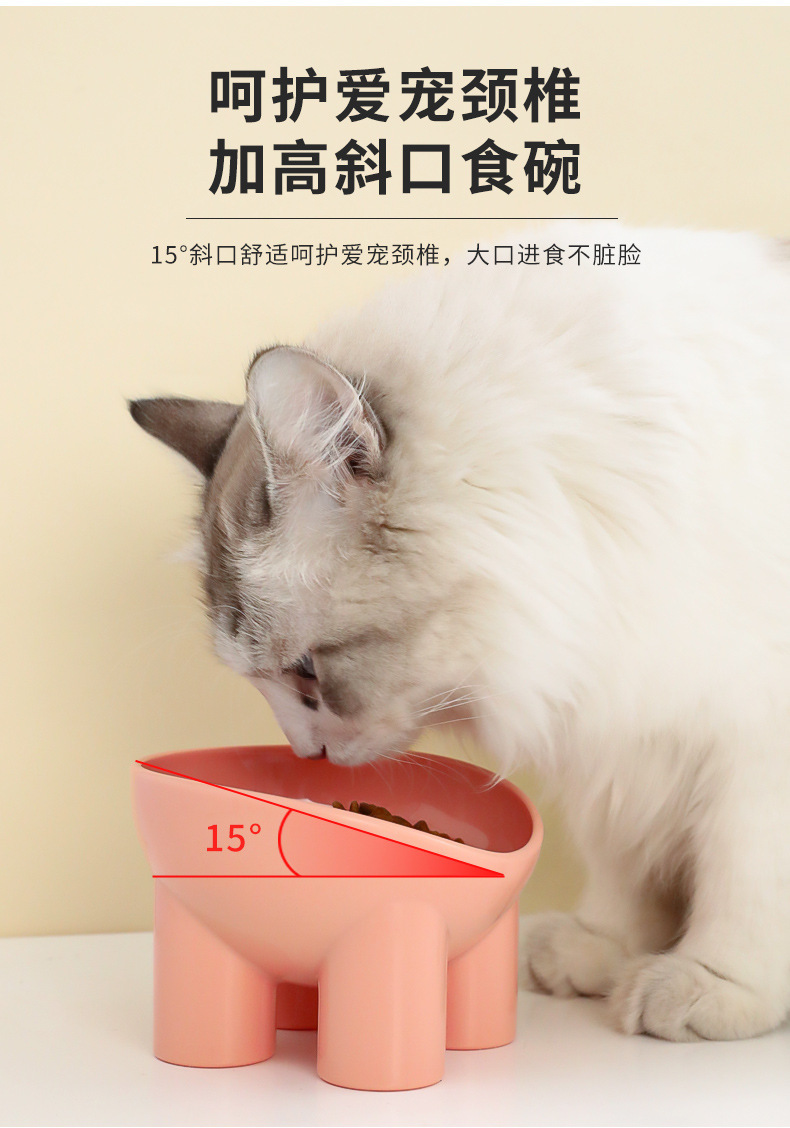 Havo 원래 목 보호 고양이 그릇 마카롱 컬러 코끼리 다리 그릇 큰 직경 고양이 음식 분지 플라스틱 높은 발 애완 동물 그릇스토어 가기