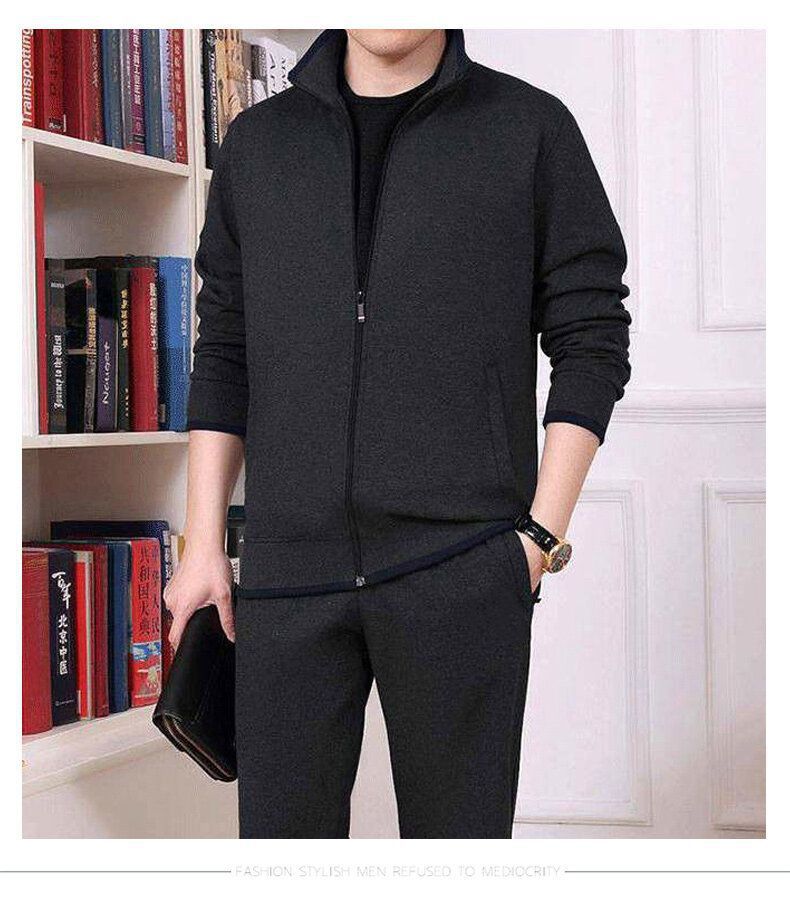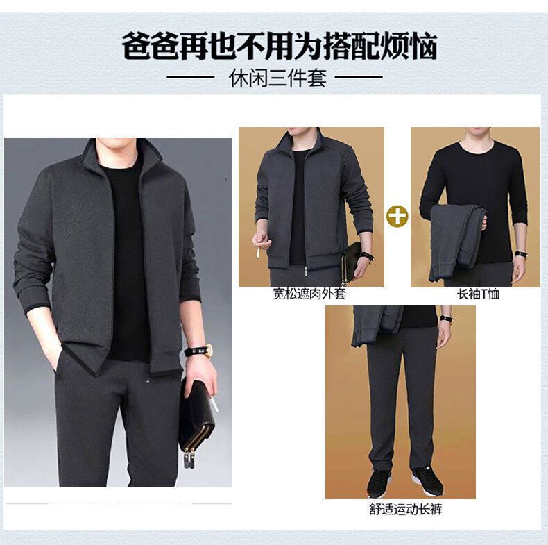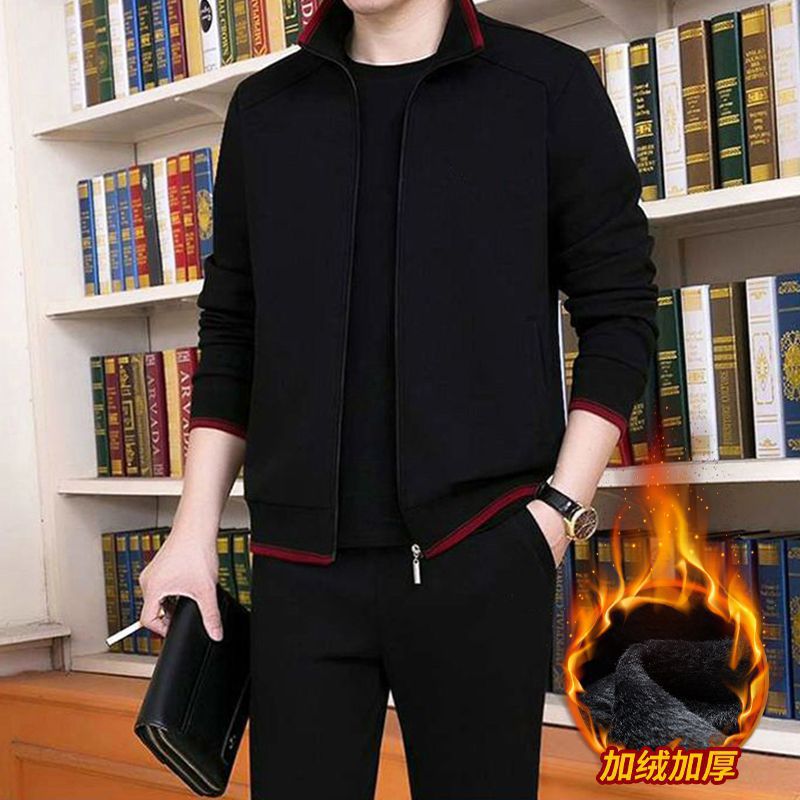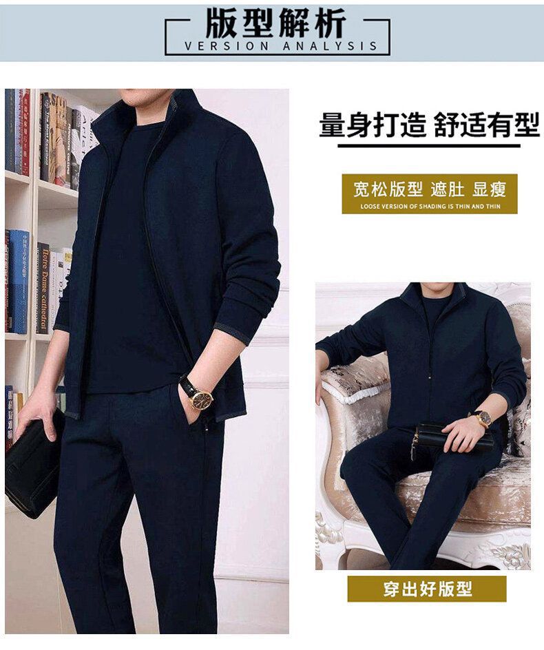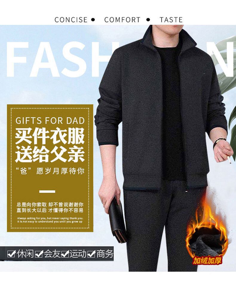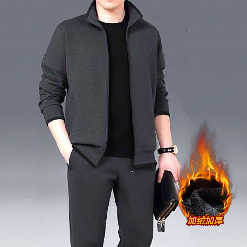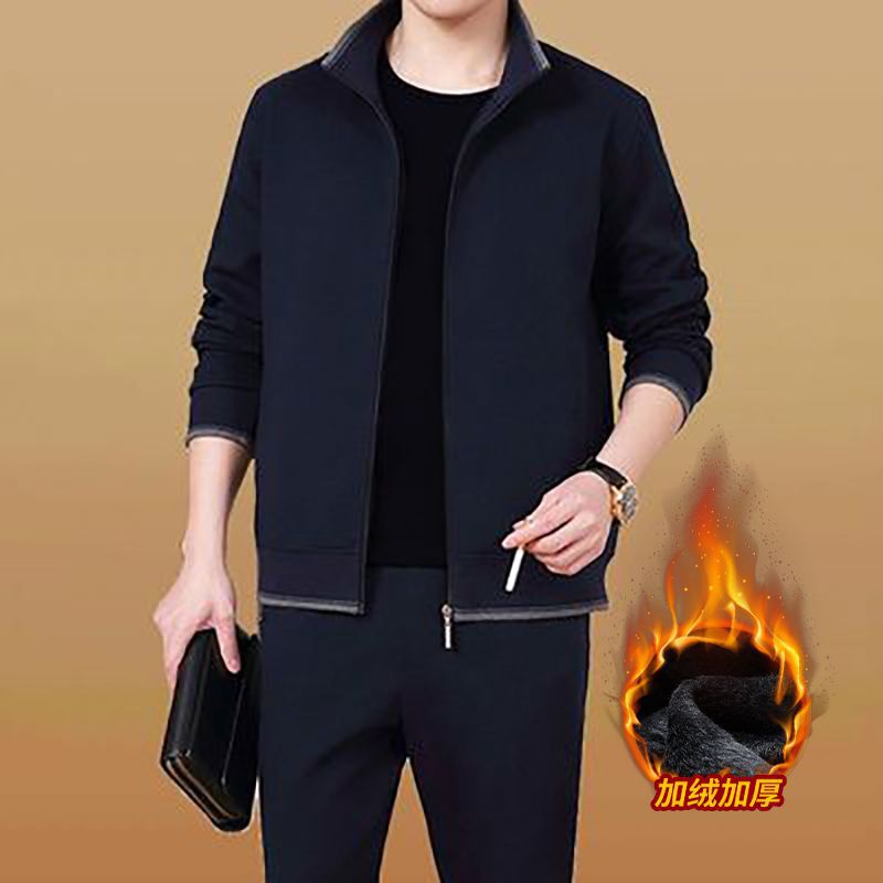 기모 두꺼운 순면 캐주얼 스포츠 세트 남자의 중년 및 노인 아빠 세트 남자의 재킷 느슨한 투피스 세트스토어 가기