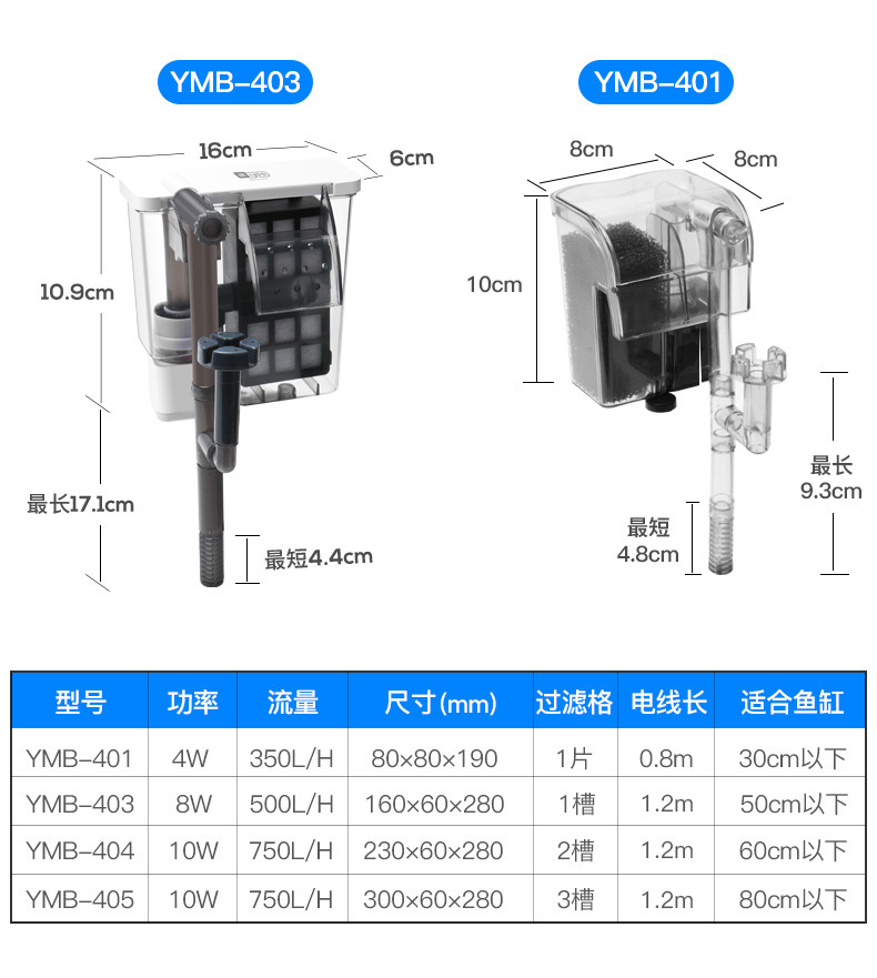 • 8W 여과/기름 제거 필름/50cm 이하의 어항 YMB-403 적합