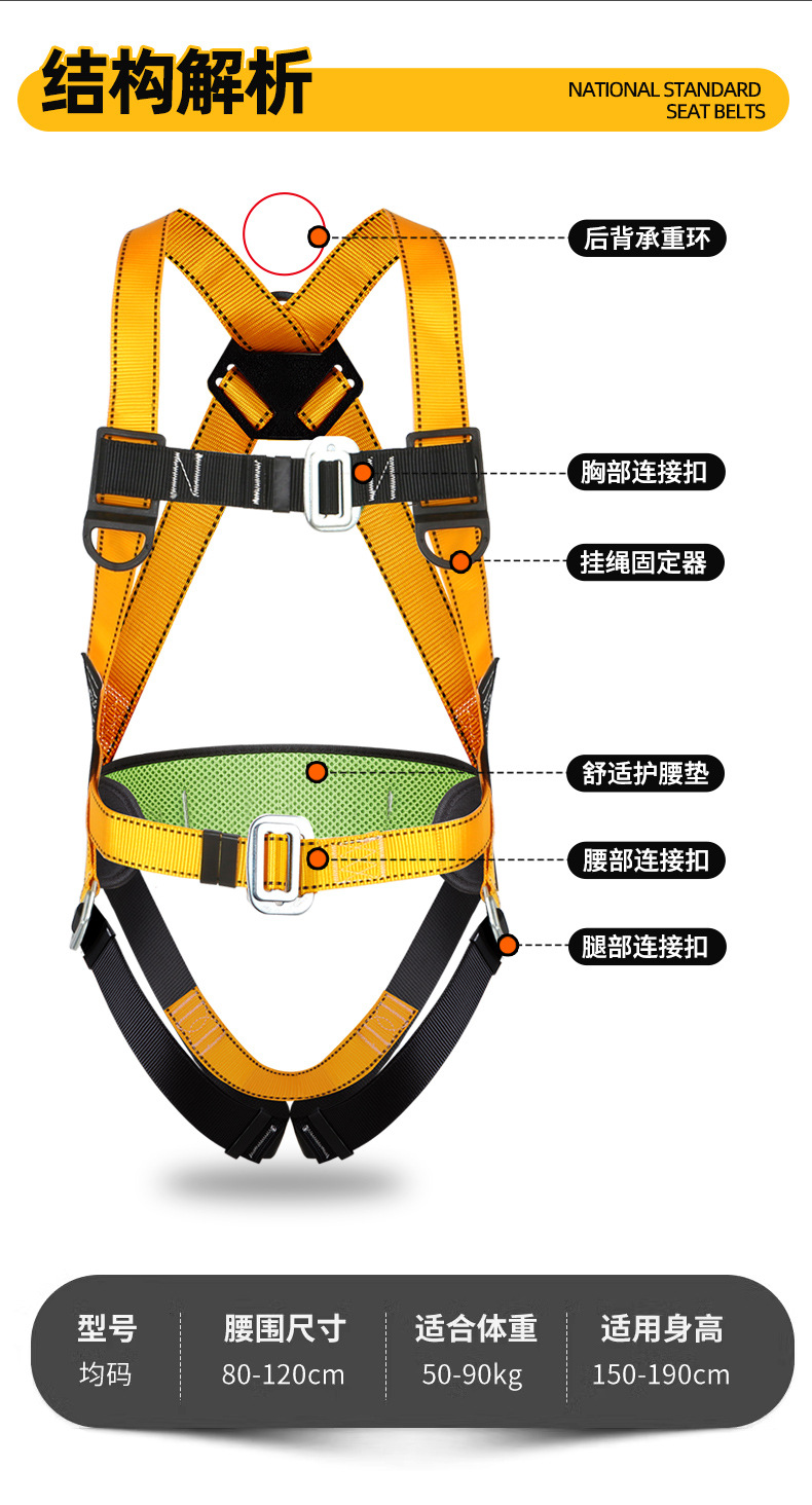 • 새로운 국가 표준 [GB6095-2021] 허리 보호대 및 완충 기능이 없는 단일 대형 후크 3m
