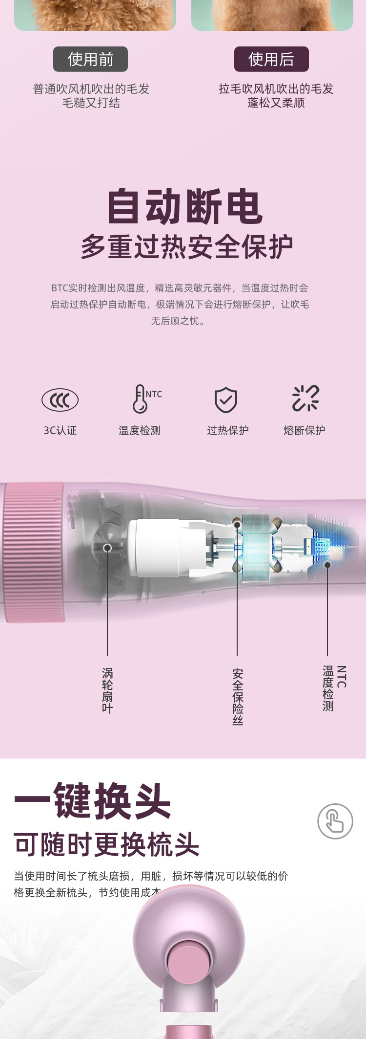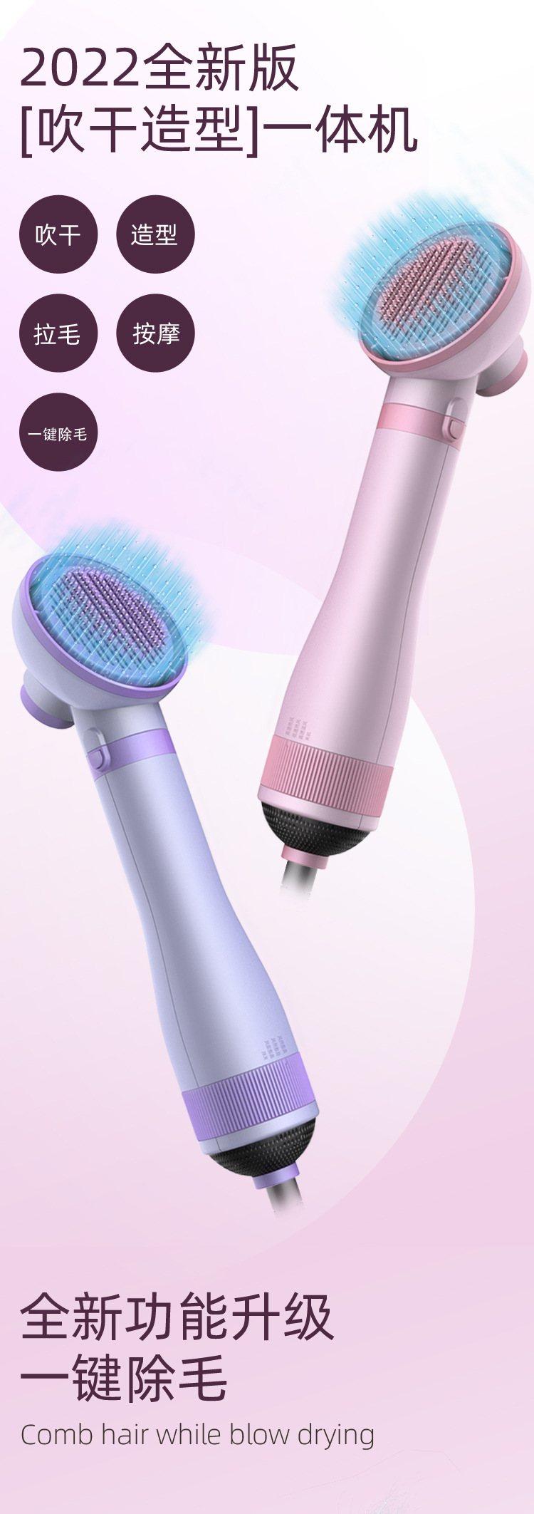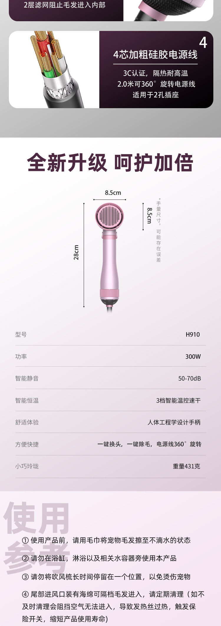 부정적인 이온 애완 동물 헤어 드라이어 개 머리 당기는 기계 높은 전력 지능형 뜨거운 공기 빗 고양이 빗질 강아지 헤어 드라이어