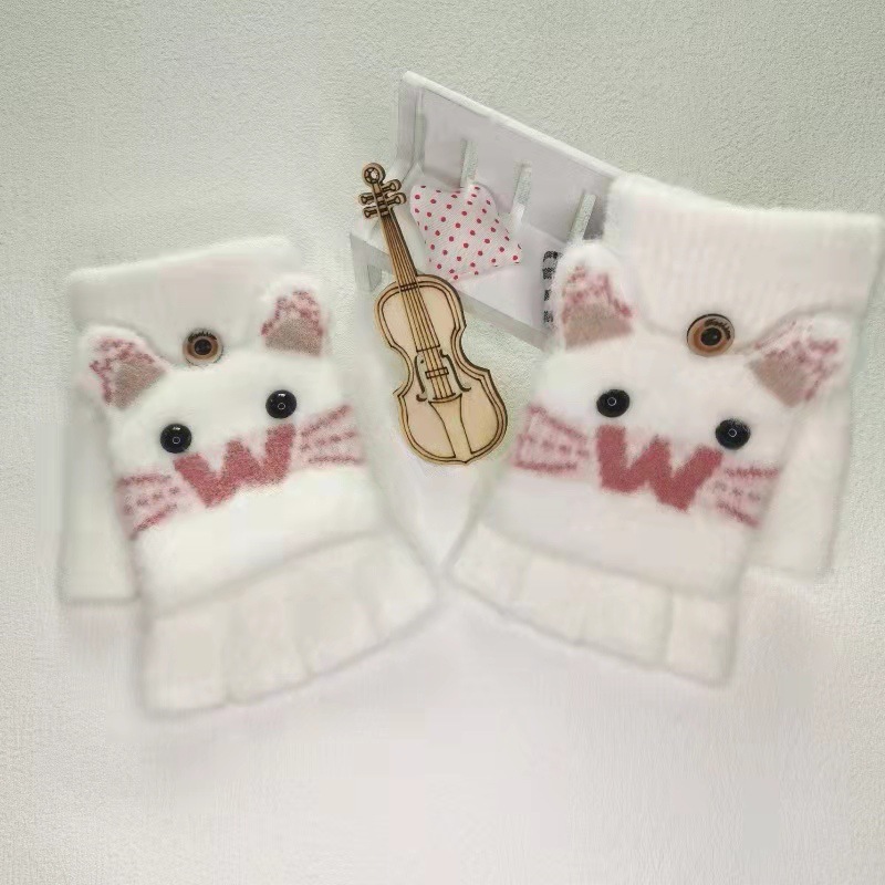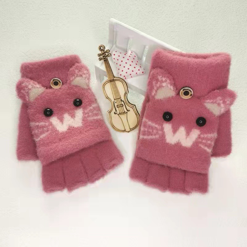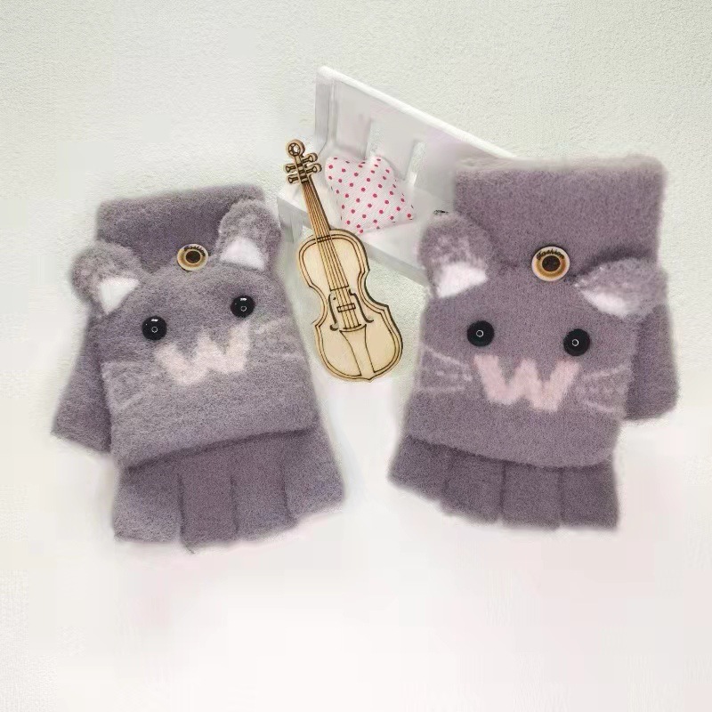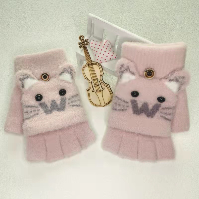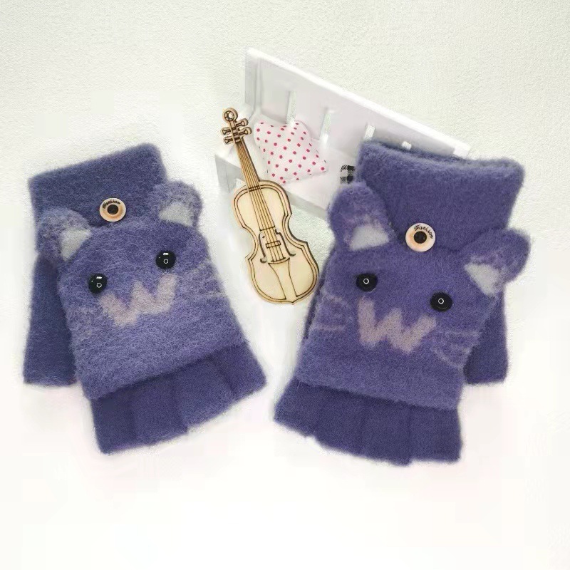 어린이 겨울 따뜻한 부동액 손 소년과 소녀를위한 귀여운 만화 반 손가락 플립 커버 큰 어린이와 학생 니트 쓰기 장갑스토어 가기