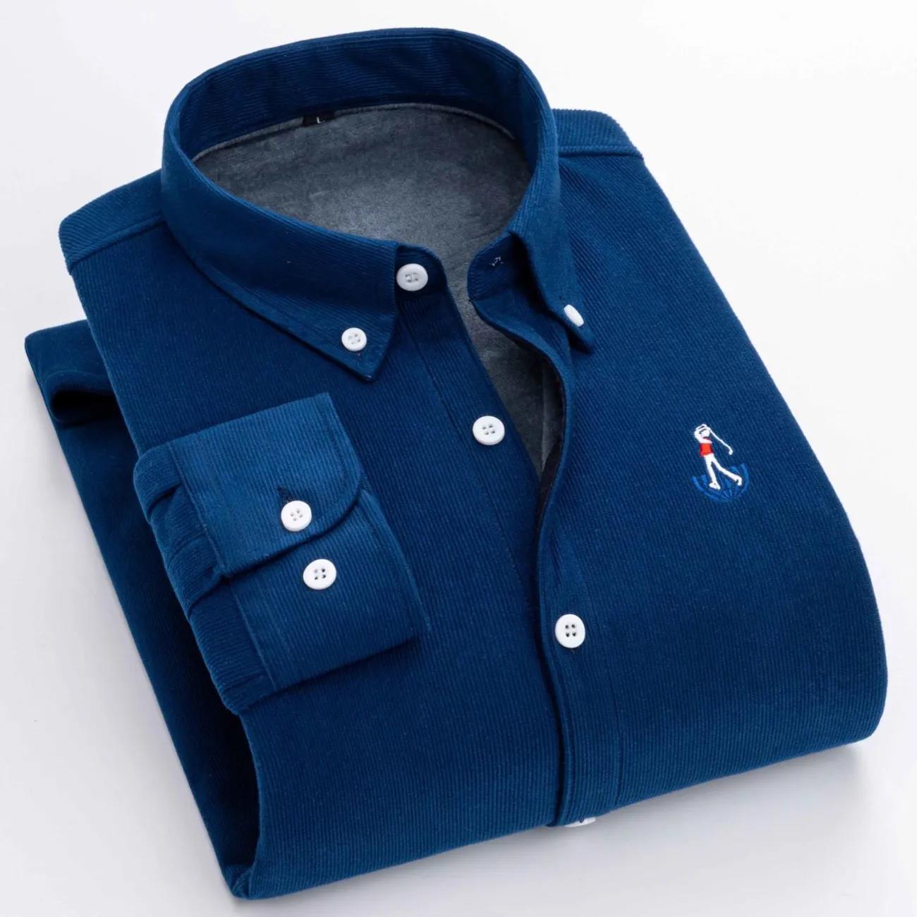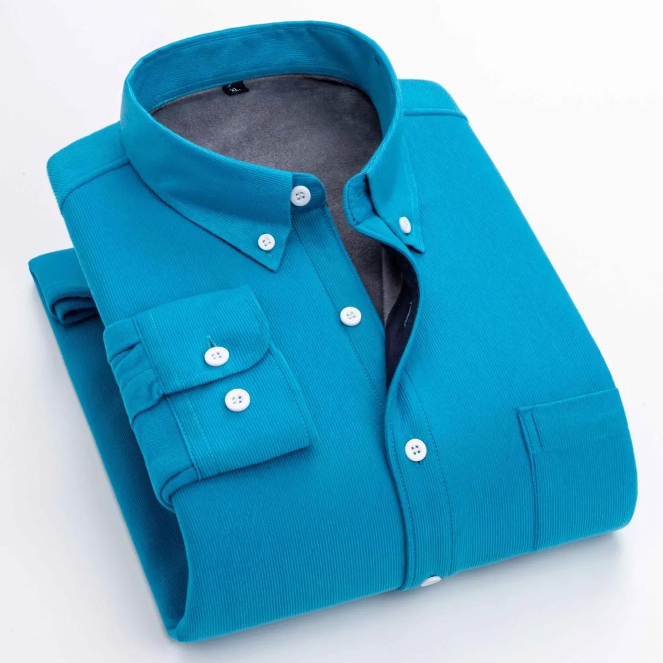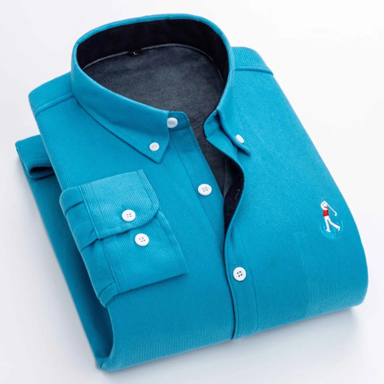 겨울 코듀로이 기모 두꺼운 남자의 따뜻한 셔츠 긴팔 한국식 면 패딩 옷 단색 셔츠 비 철 아빠 옷