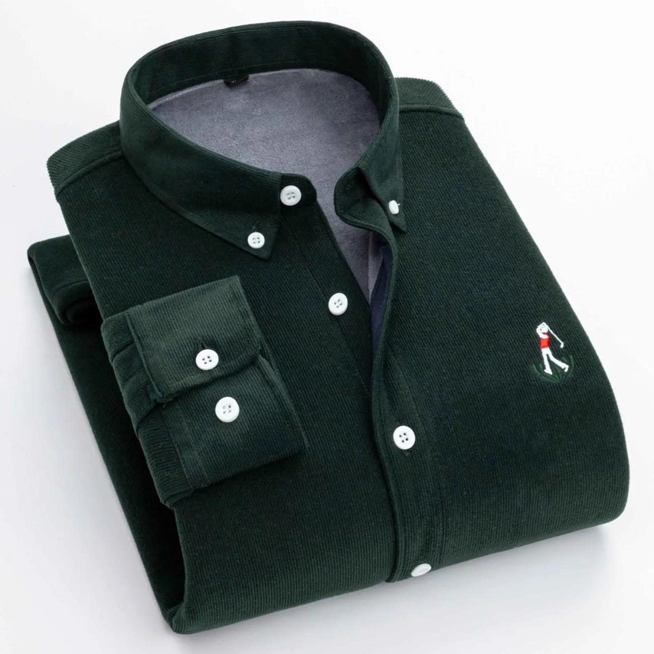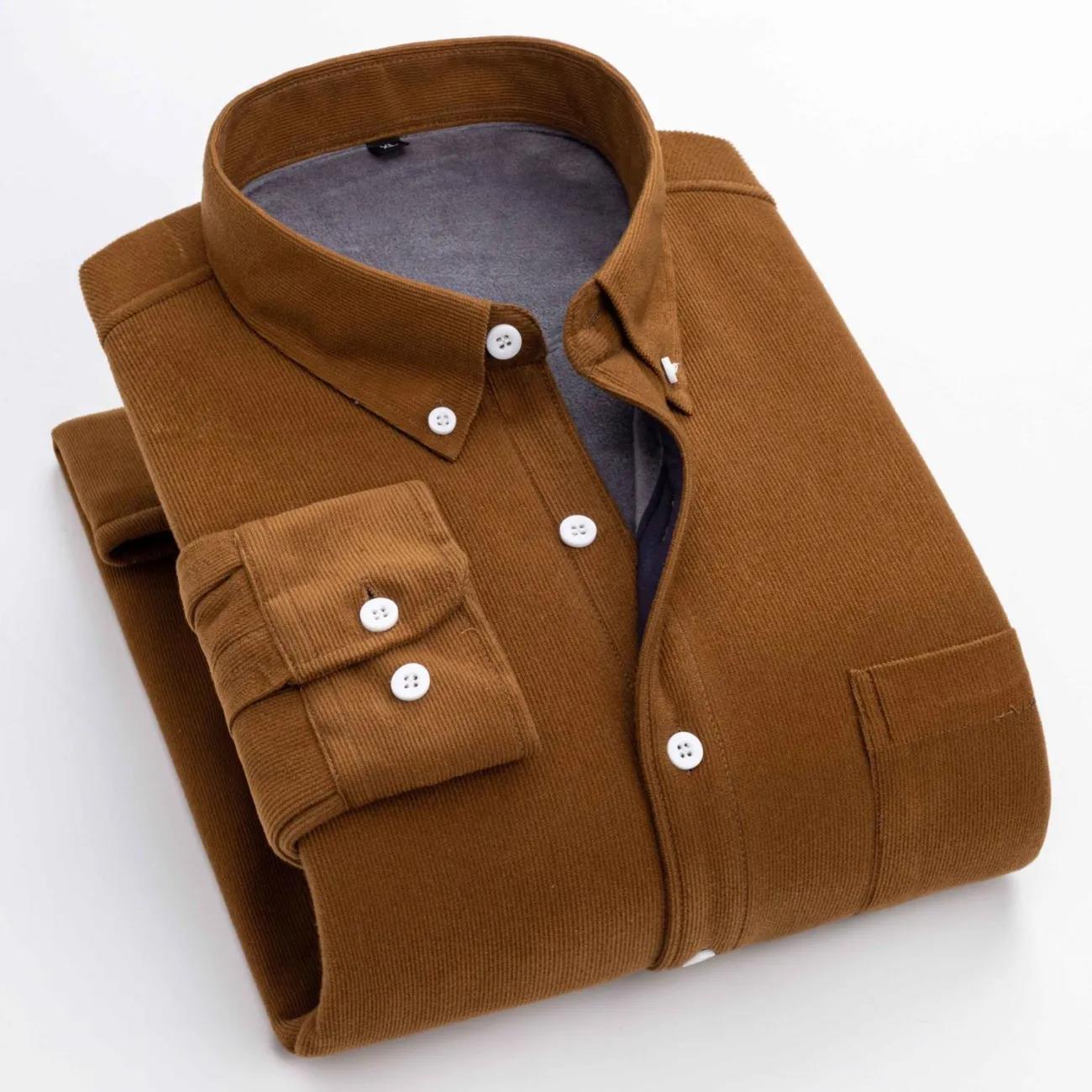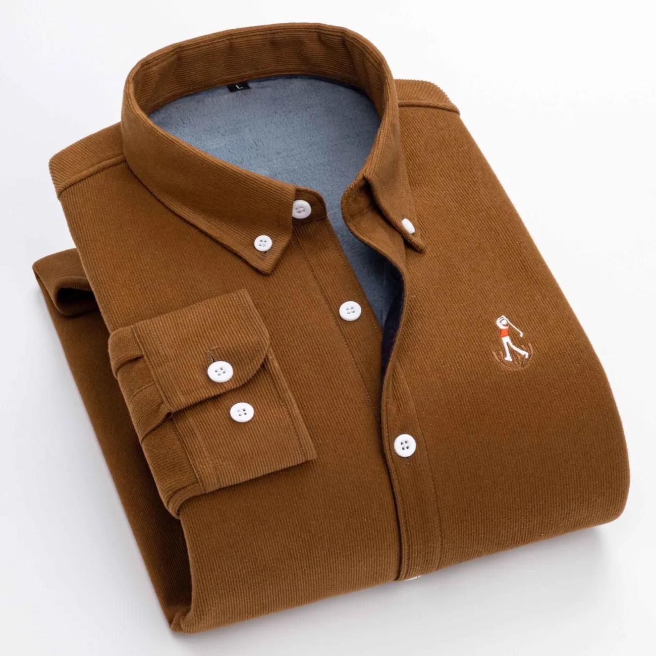 겨울 코듀로이 기모 두꺼운 남자의 따뜻한 셔츠 긴팔 한국식 면 패딩 옷 단색 셔츠 비 철 아빠 옷스토어 가기