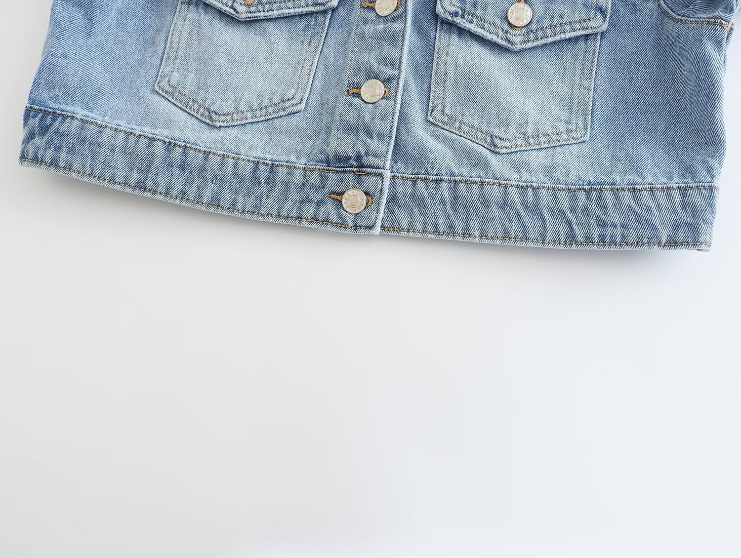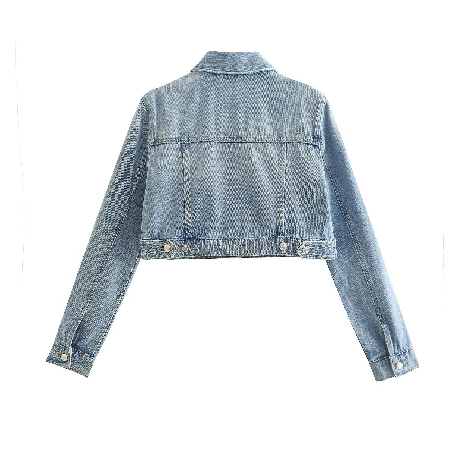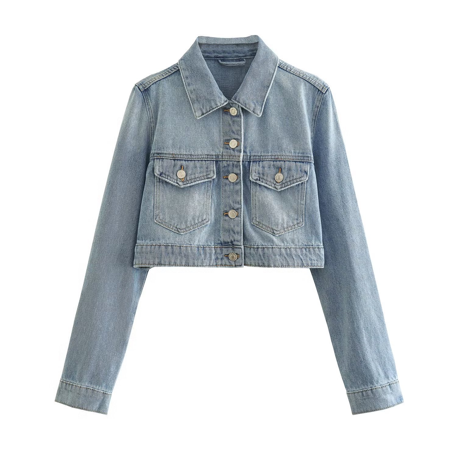 7314 이른 겨울 새로운 여성 의류 유럽과 미국 스타일 옷깃 포켓 장식 싱글 브레스트 짧은 데님 재킷