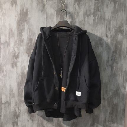 가을과 겨울 포켓 라벨 디자인 후드 재킷 남자의 한국 스타일 유행 플러스 사이즈 느슨한 유행 브랜드 버튼 카디건 스웨터