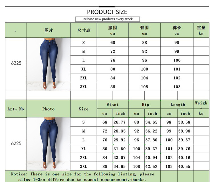 유럽과 미국 여성의 2023 크로스 보더 아마존 WISH AliExpress 여성 청바지 하이 웨이스트 슬림 연필 바지스토어 가기