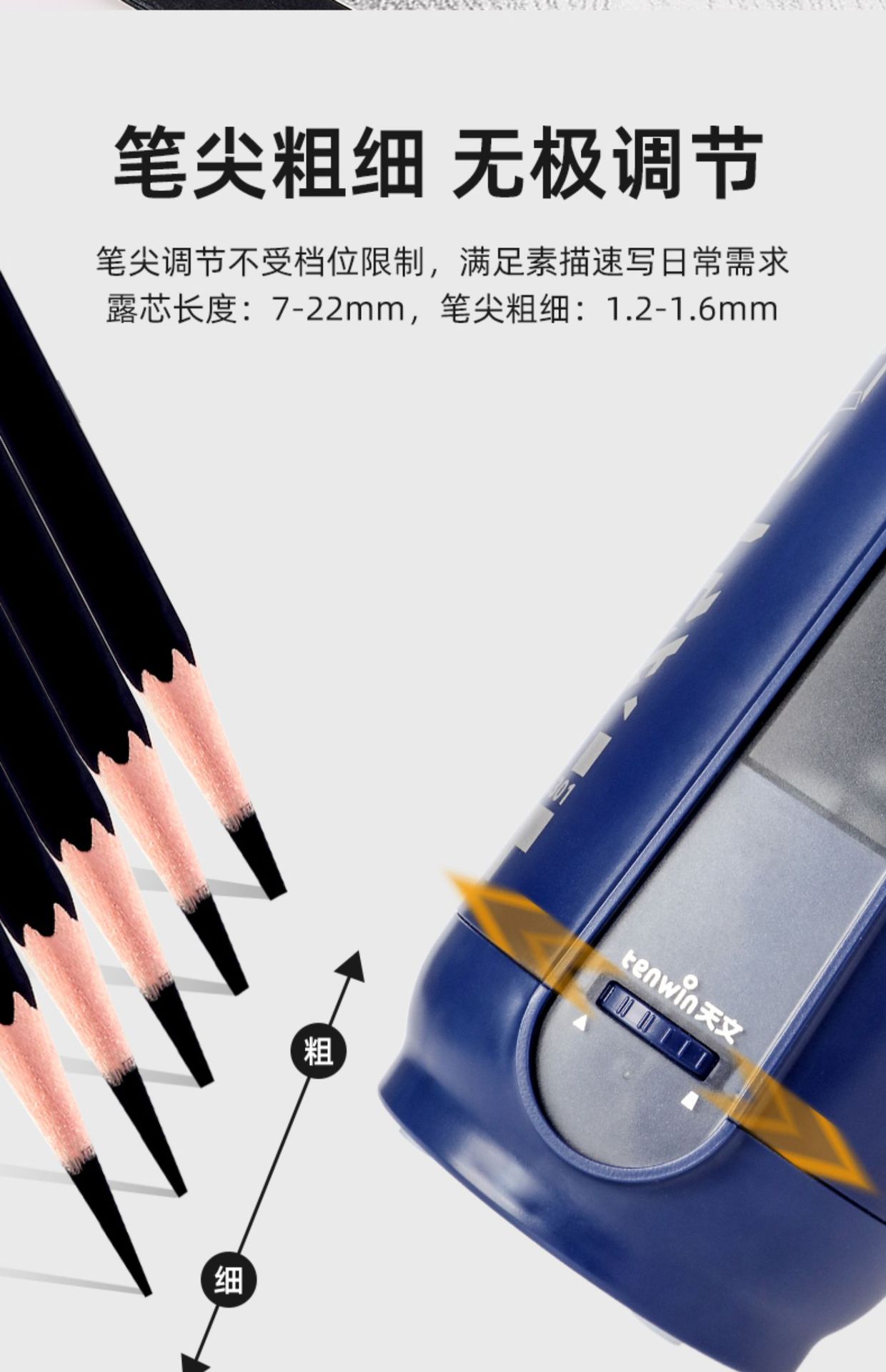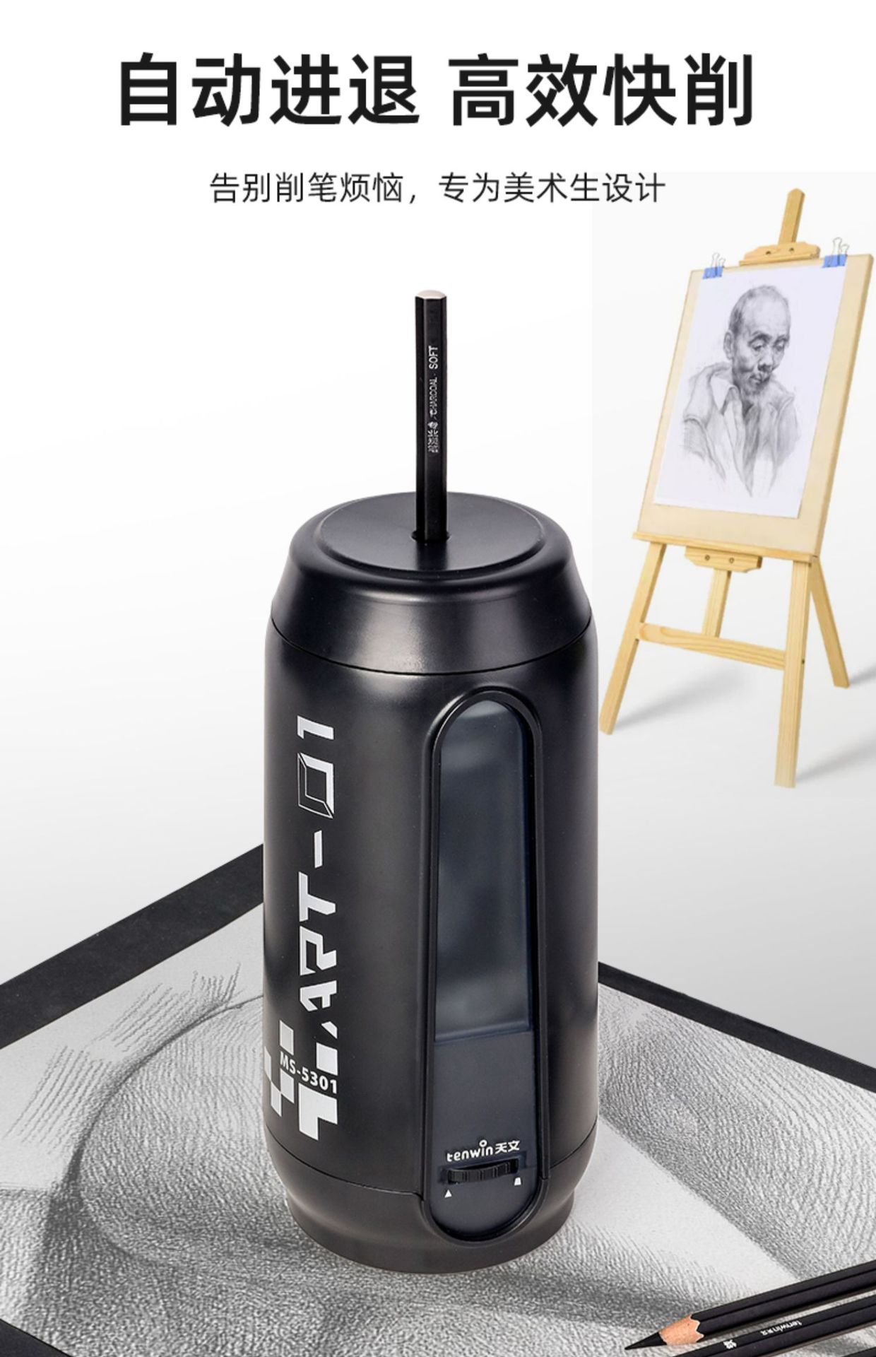 Tenwin 천문 예술 자동 연필 깎이 빠른 쓰기 탄소 펜 팁 조정 가능한 전기 연필 깎이 MS5301스토어 가기