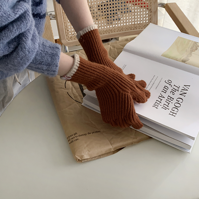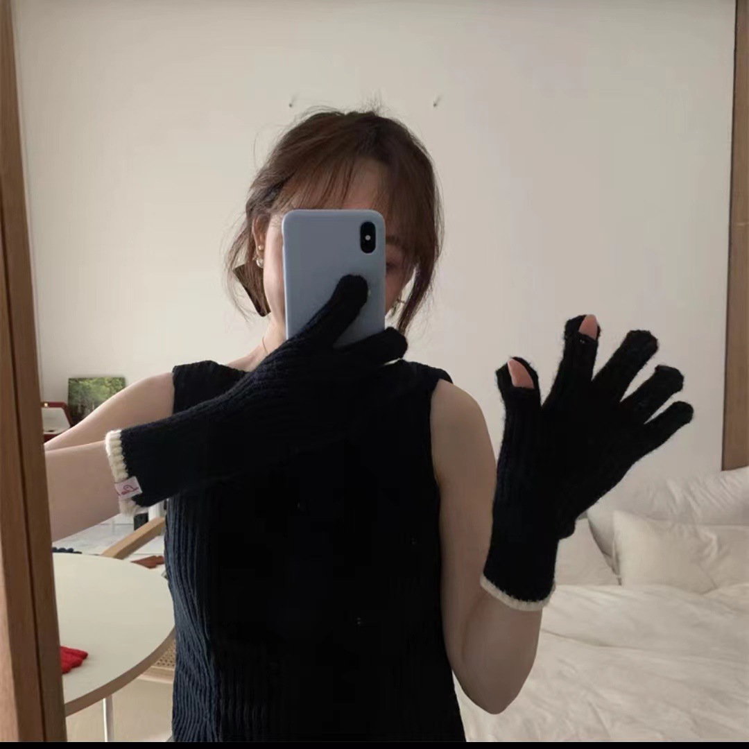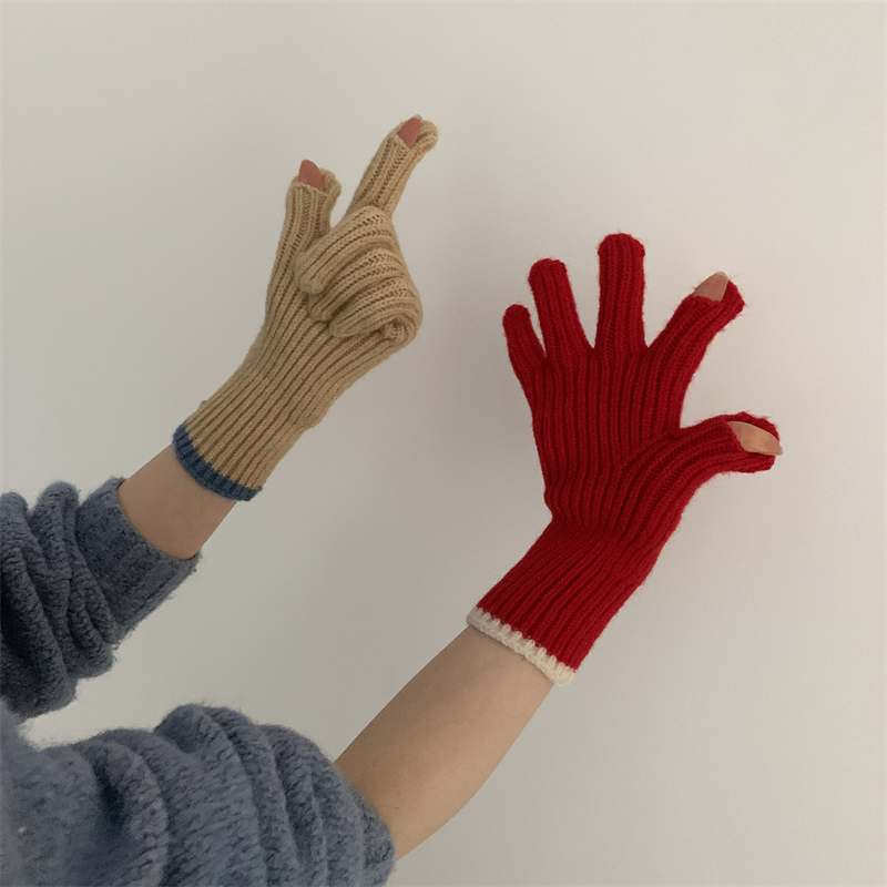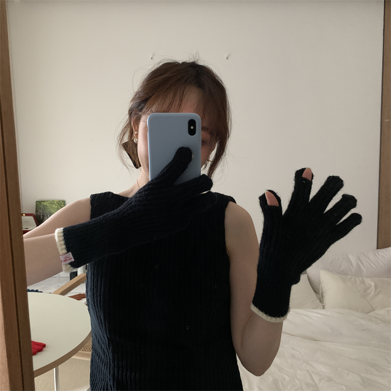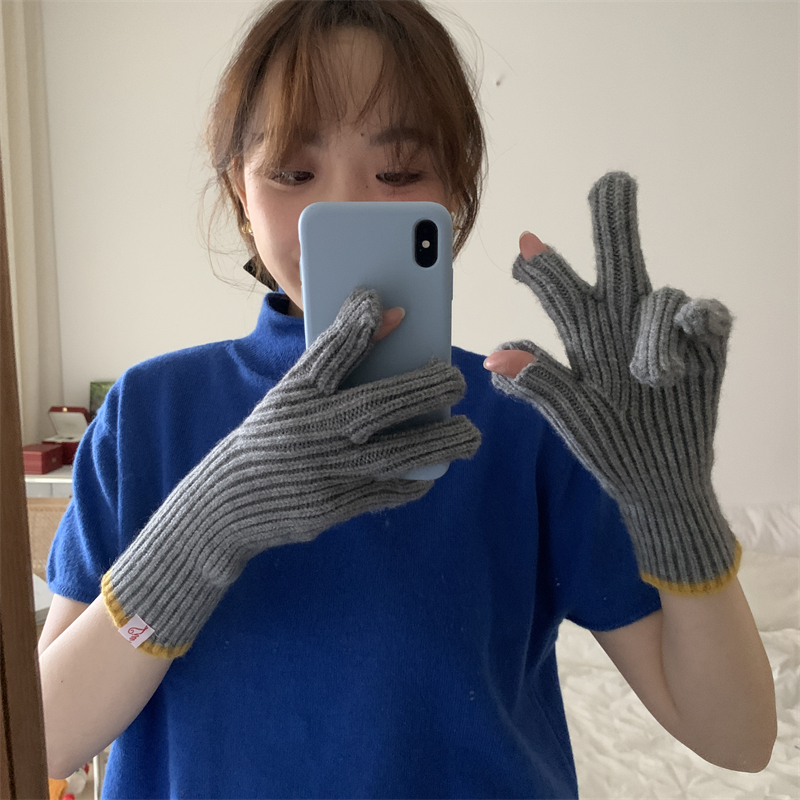 가을과 겨울을위한 백만 손가락 귀여운 양모 장갑 승마 학생 팔찌 긴 장갑 새는 손가락 터치 스크린