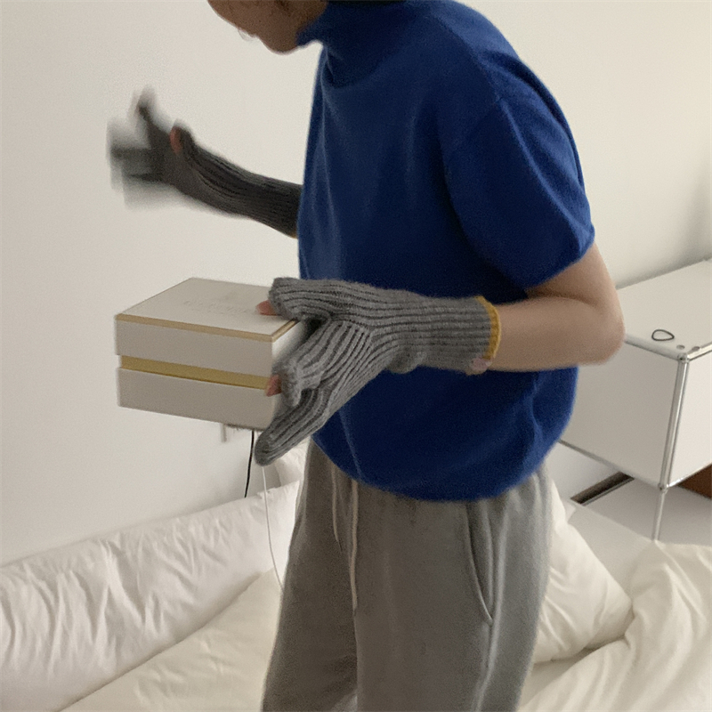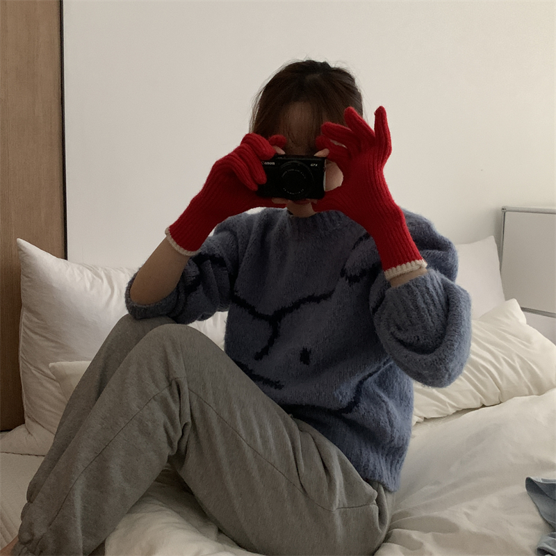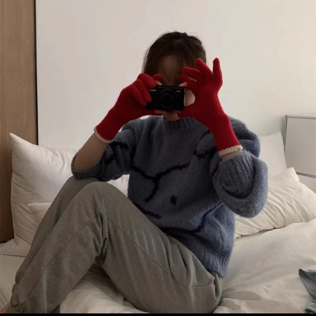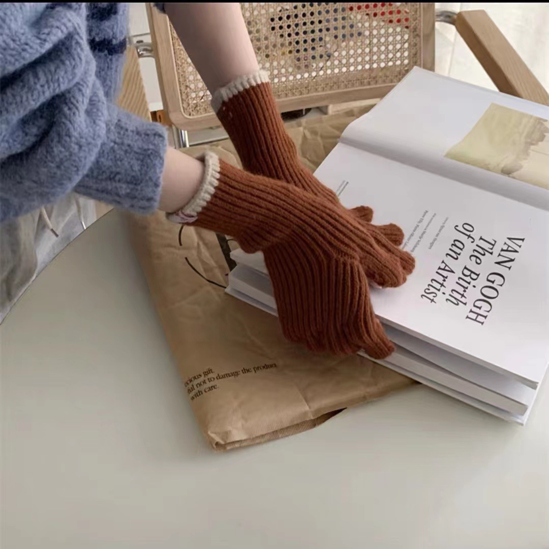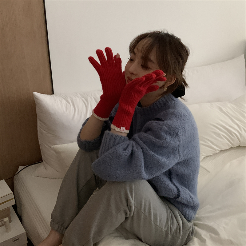 가을과 겨울을위한 백만 손가락 귀여운 양모 장갑 승마 학생 팔찌 긴 장갑 새는 손가락 터치 스크린