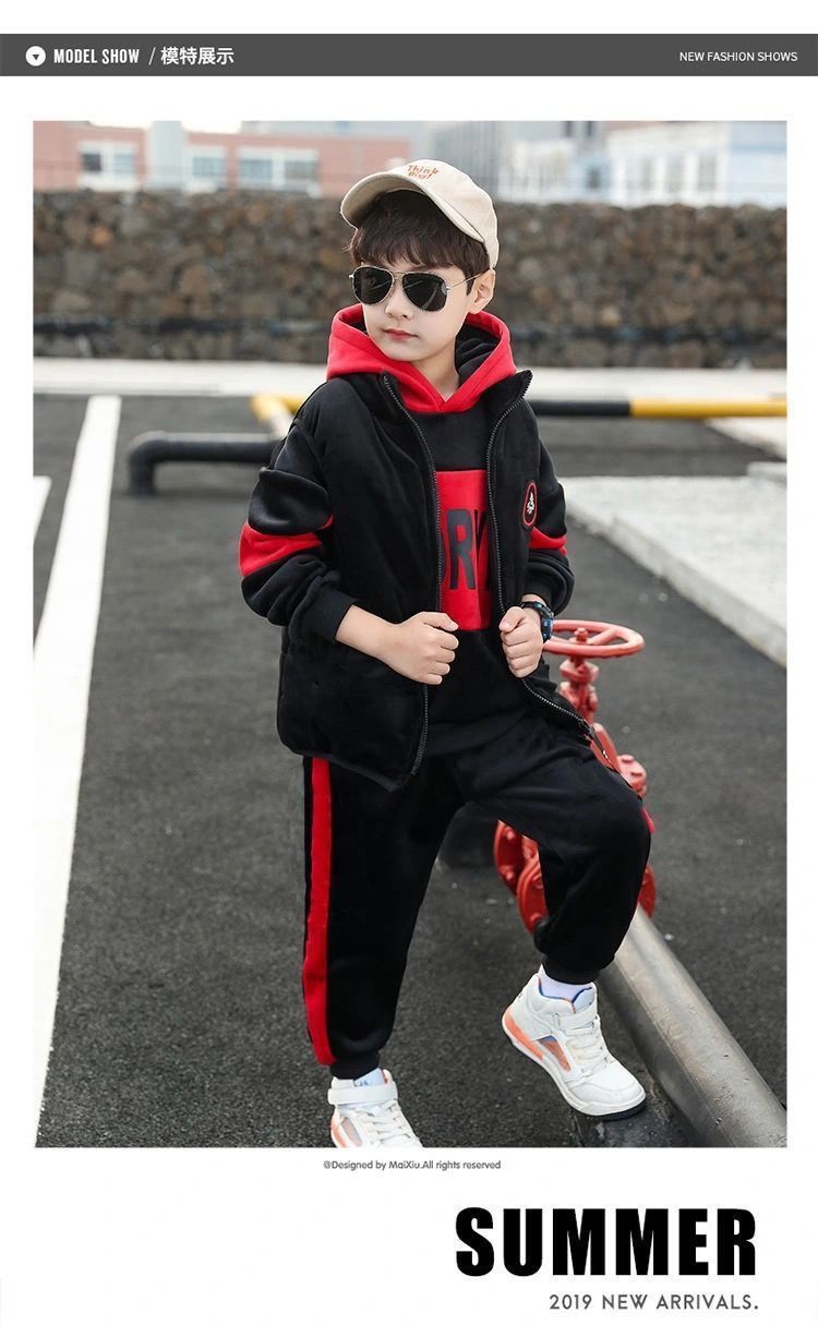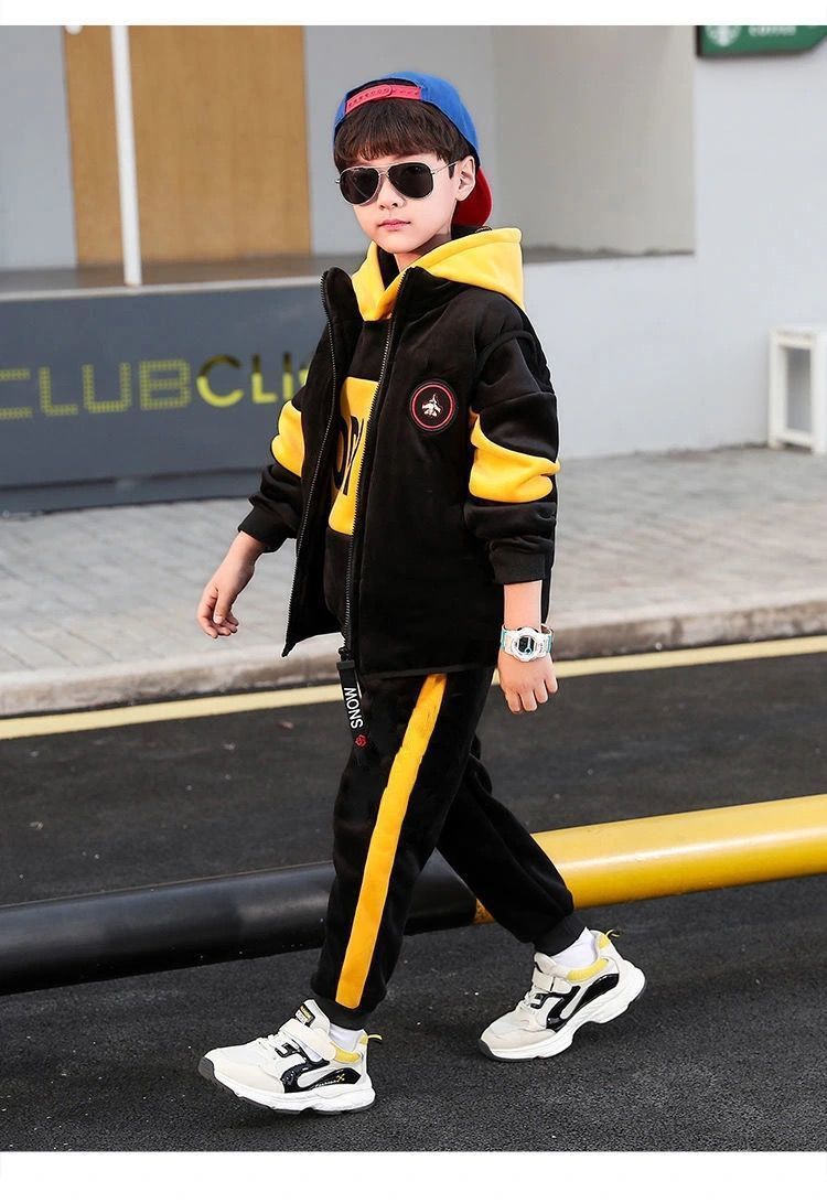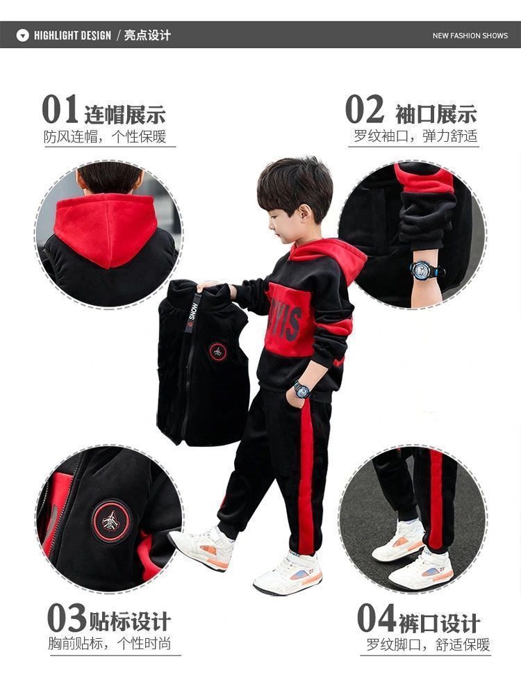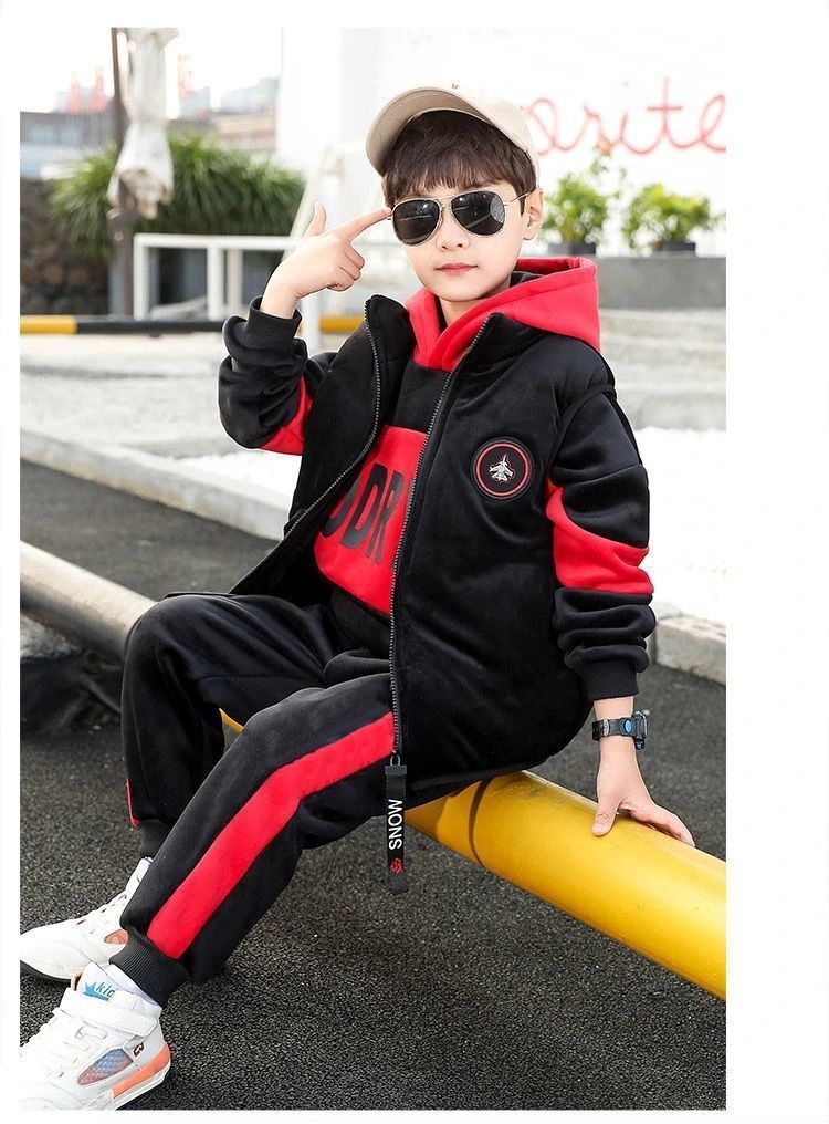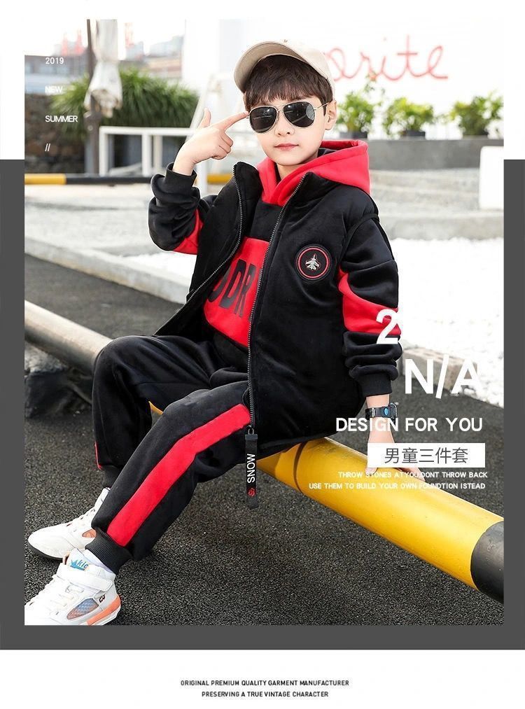 어린이 두꺼운 기모 스포츠 쓰리 피스 세트 큰 어린이 양면 양털 까마귀 유행 소년 겨울 세트 새로운 스타일스토어 가기