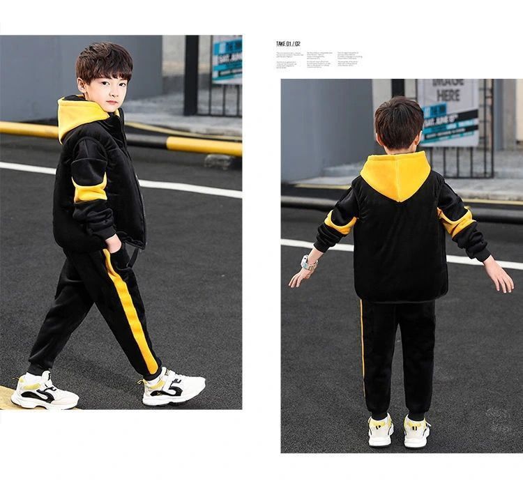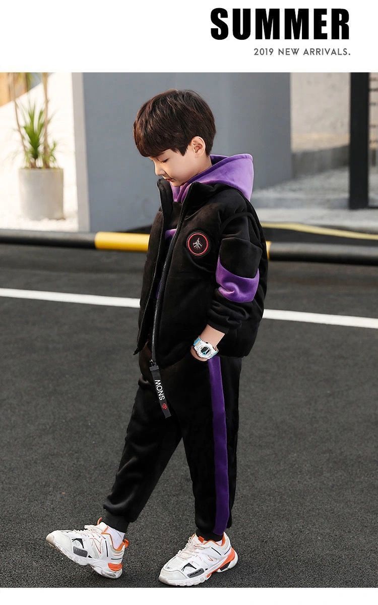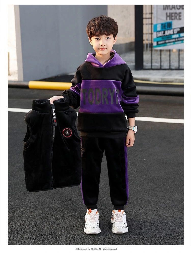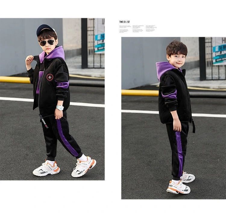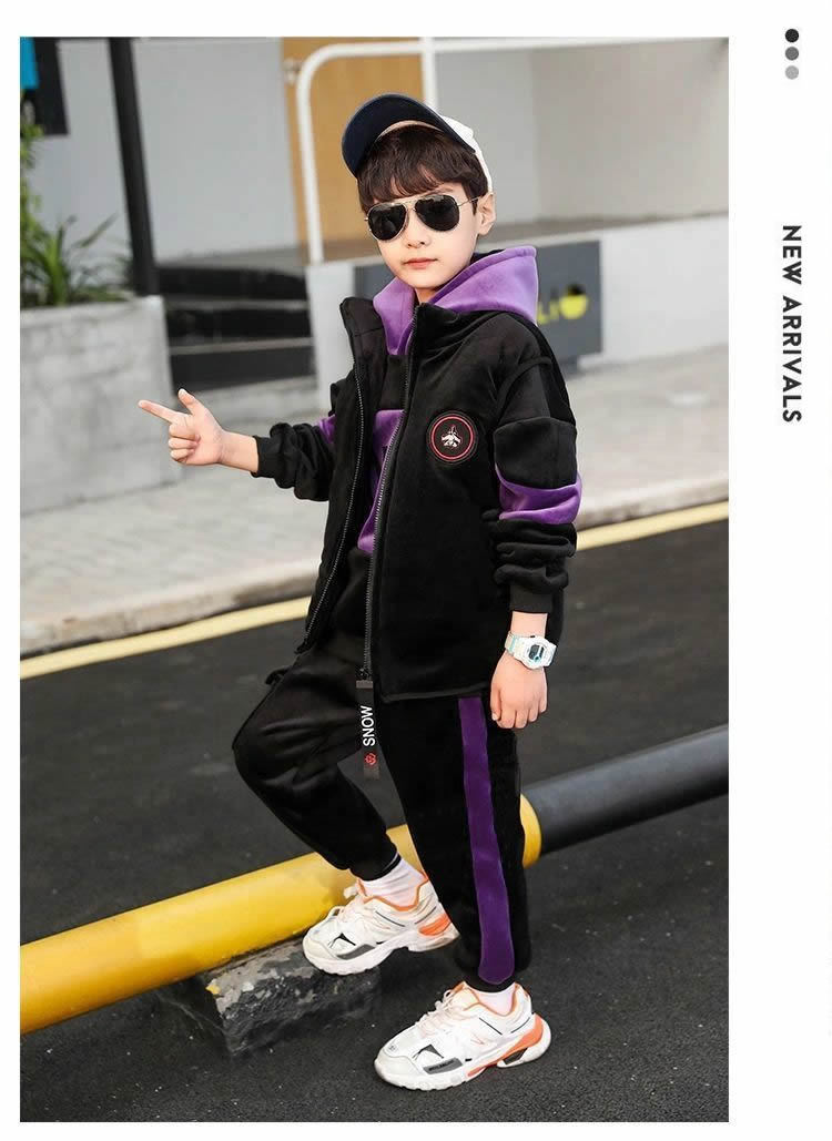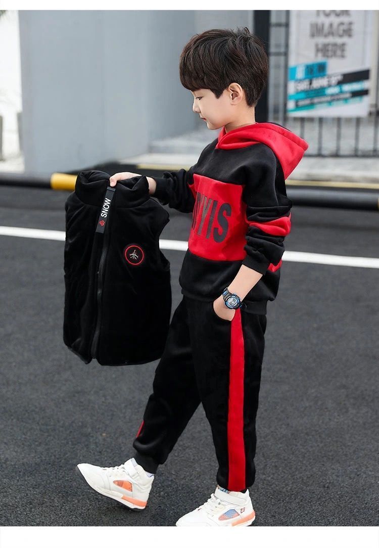 어린이 두꺼운 기모 스포츠 쓰리 피스 세트 큰 어린이 양면 양털 까마귀 유행 소년 겨울 세트 새로운 스타일스토어 가기