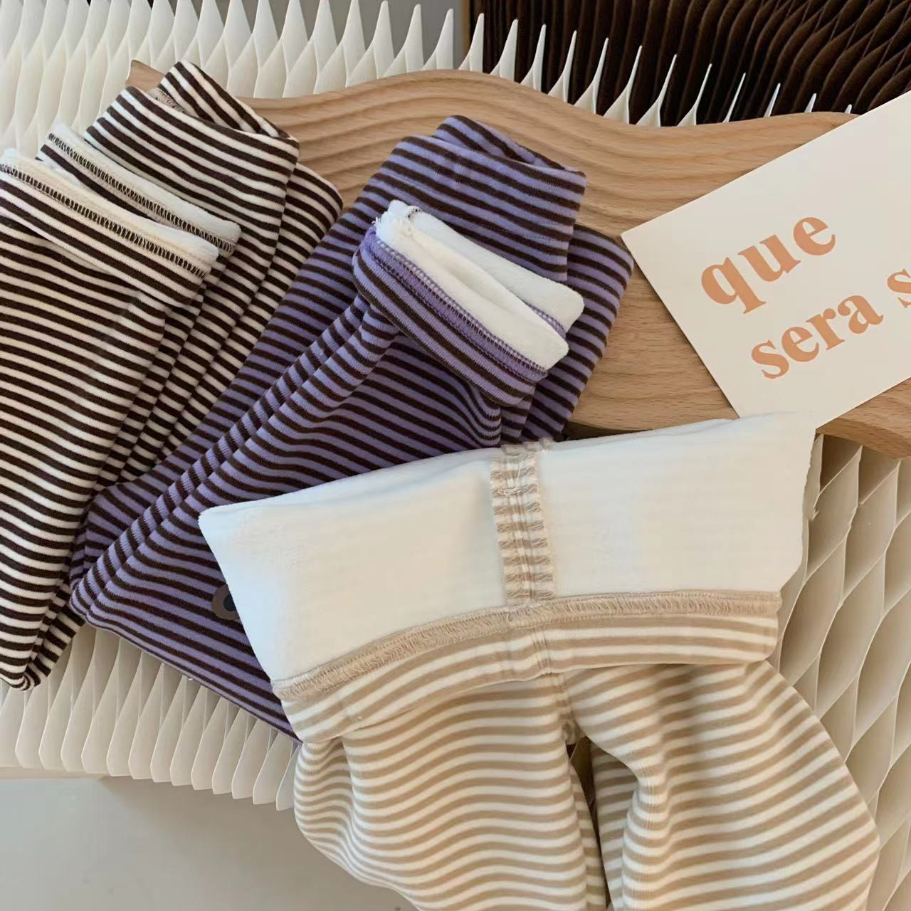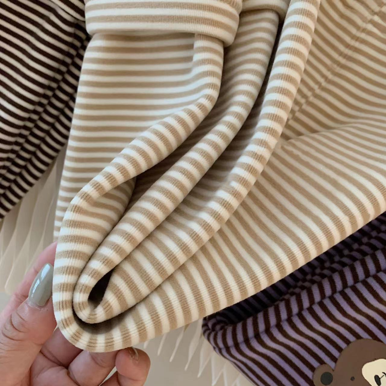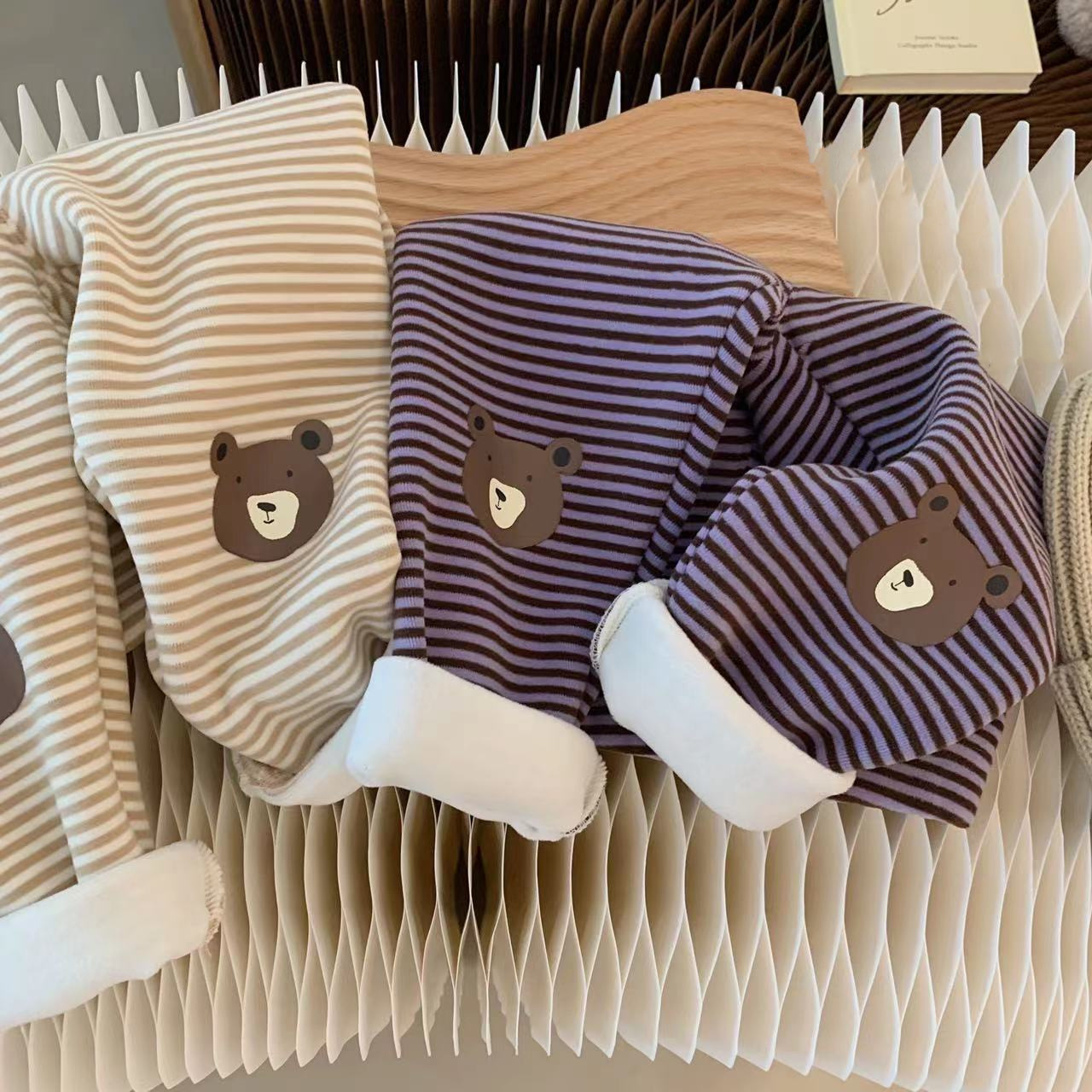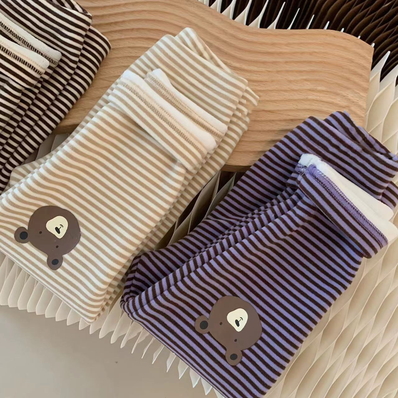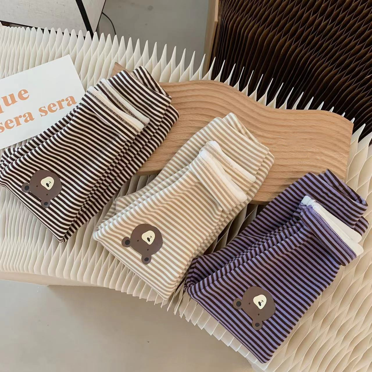 INS 겨울 기모 스트라이프 만화 곰 레깅스 아기 남성과 여성 슬림 핏 바지스토어 가기
