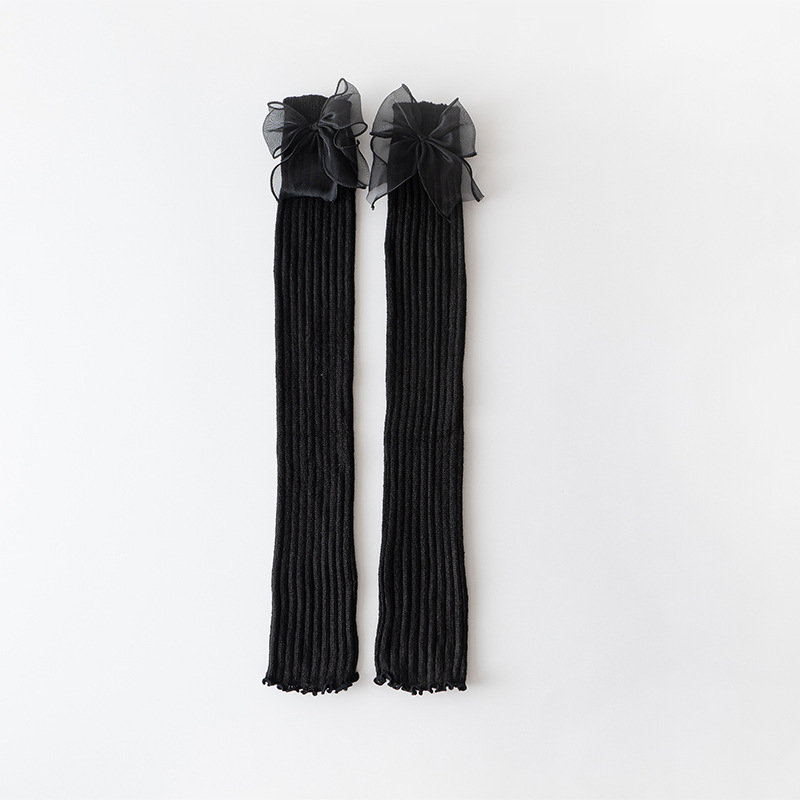 양말 여성용 블랙 거즈 보우 양말 여성용 가을과 겨울 일본식 달콤한 니트 양말 모든 경기 다리 양말 겨울