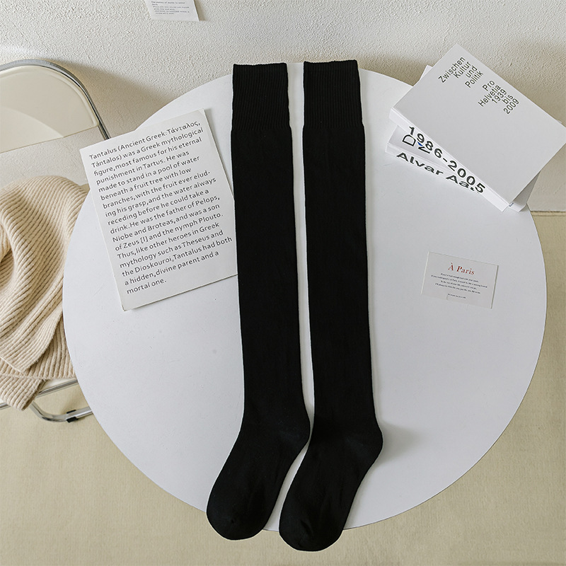 일본 jk 블랙 슬림 무릎 양말 여자의 유행 가을과 겨울 기모 두꺼운 따뜻한 무릎 패드 압력 다리 양말 Zhuji