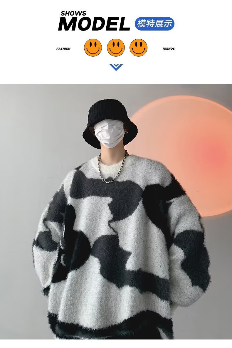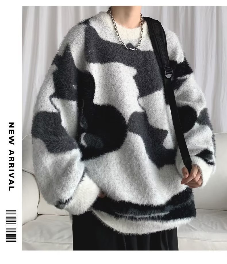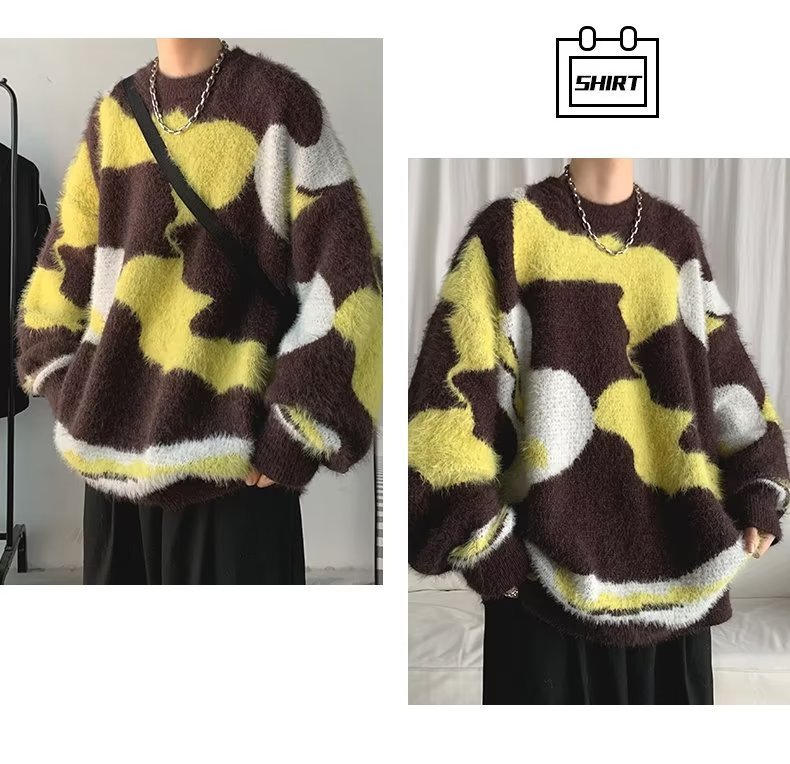 스웨터 남자의 가을과 겨울 두꺼운 풀오버 유행 브랜드 일본 스타일 복고풍 느슨한 게으른 스타일 마오 니트 스웨터 재킷스토어 가기