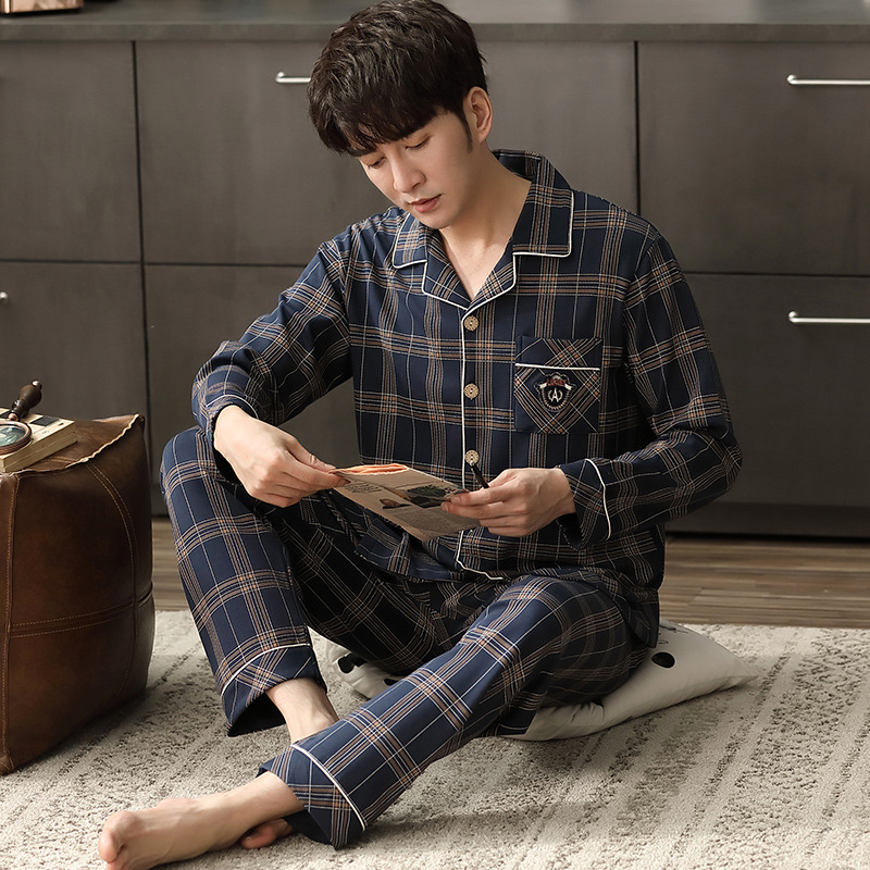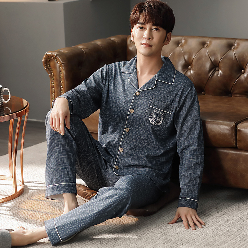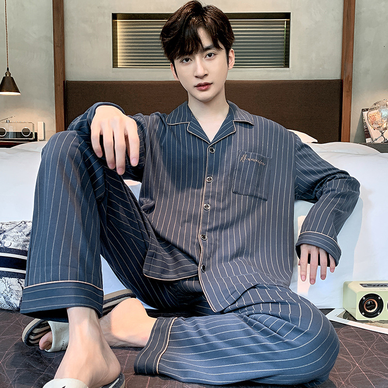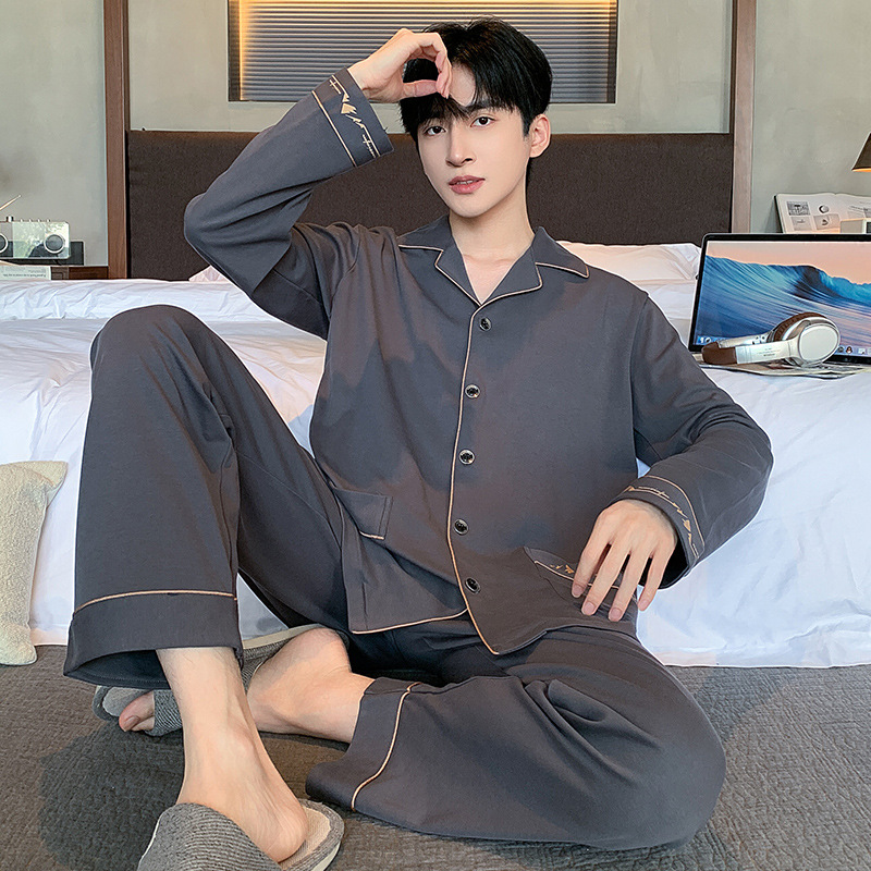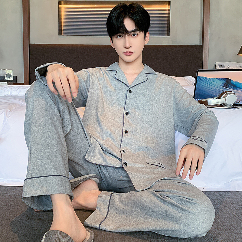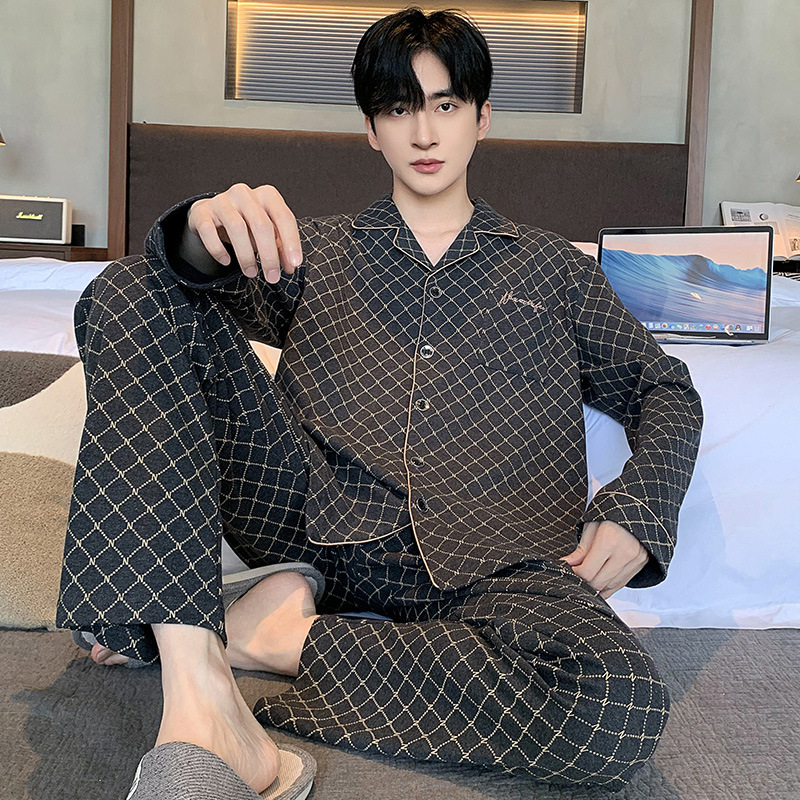 2025 새로운 잠옷 남자 가을, 겨울 면화 느슨한 긴팔 카디건 옷깃 하이 엔드 홈웨어 세트스토어 가기