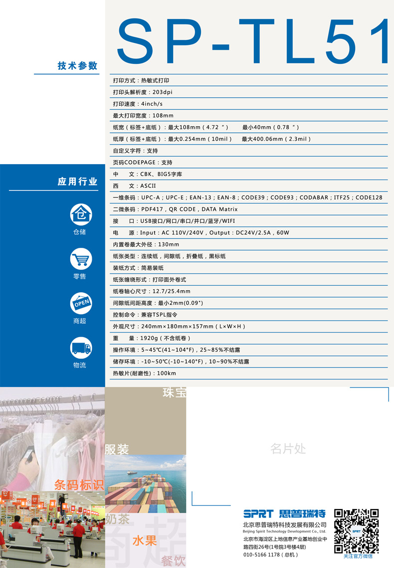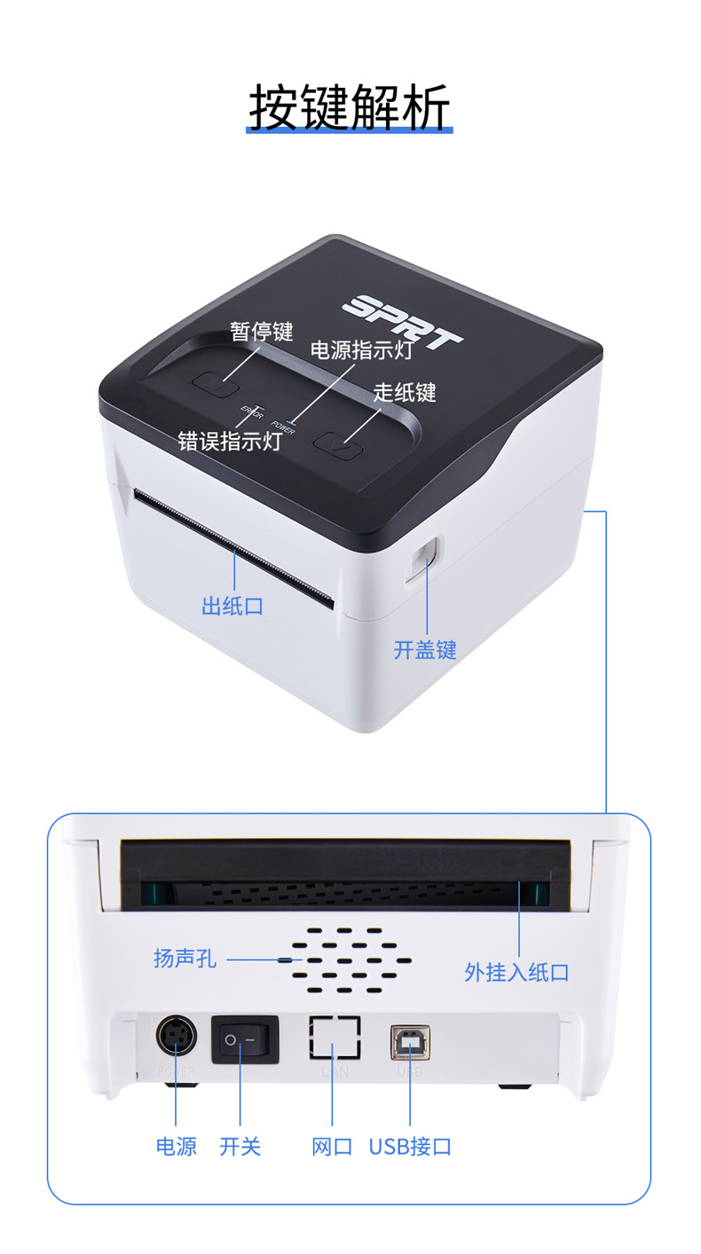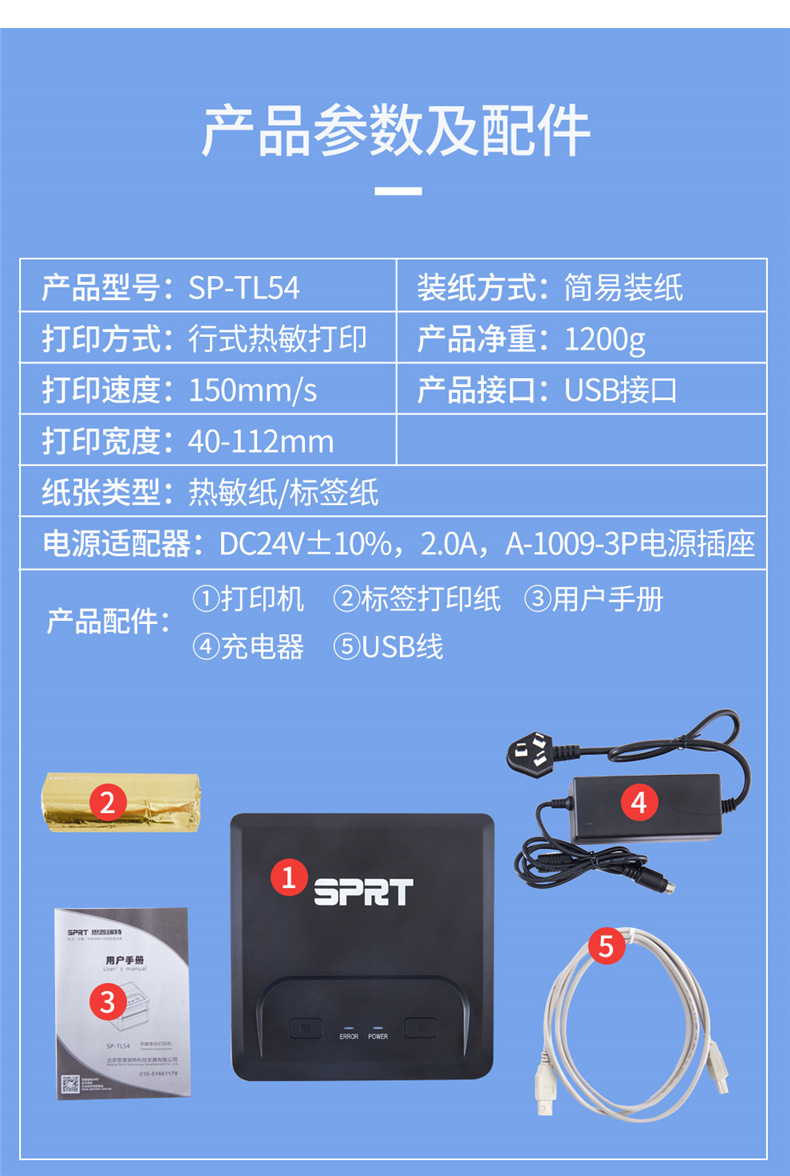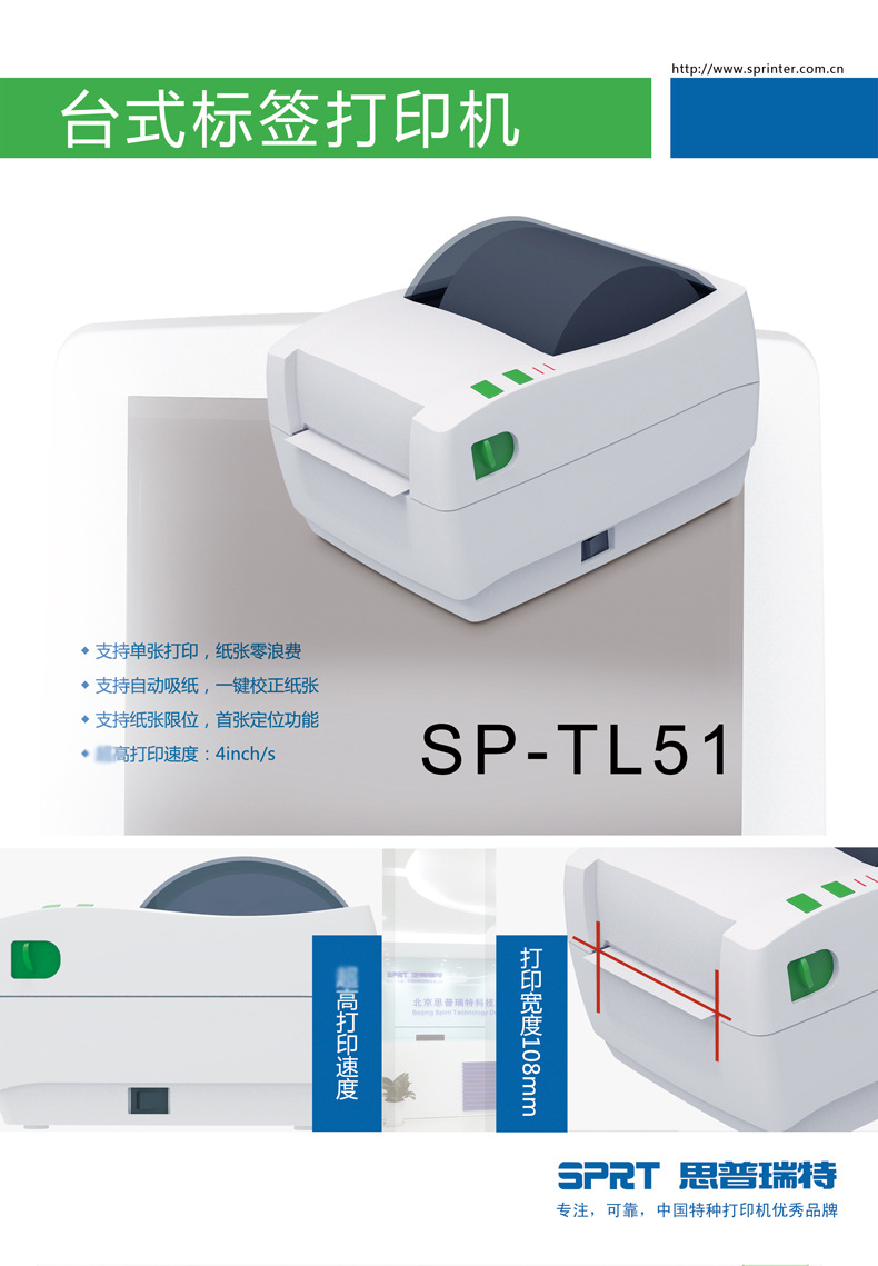 SPRT 분할 SP-TL54/51 열 전자 표면 단일 프린터 익스프레스 단일 접착 라벨 인쇄스토어 가기